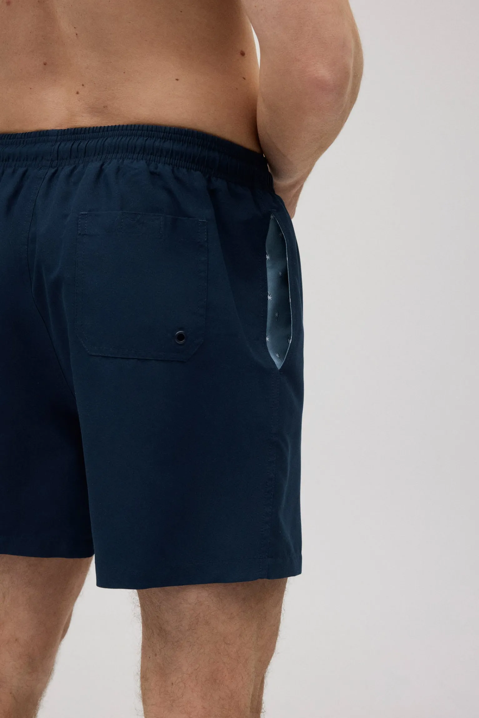 Bañador de corte medio para hombre de color liso marino. Tejido de secado rápido. Un básico imprescindible para la playa o la piscina.