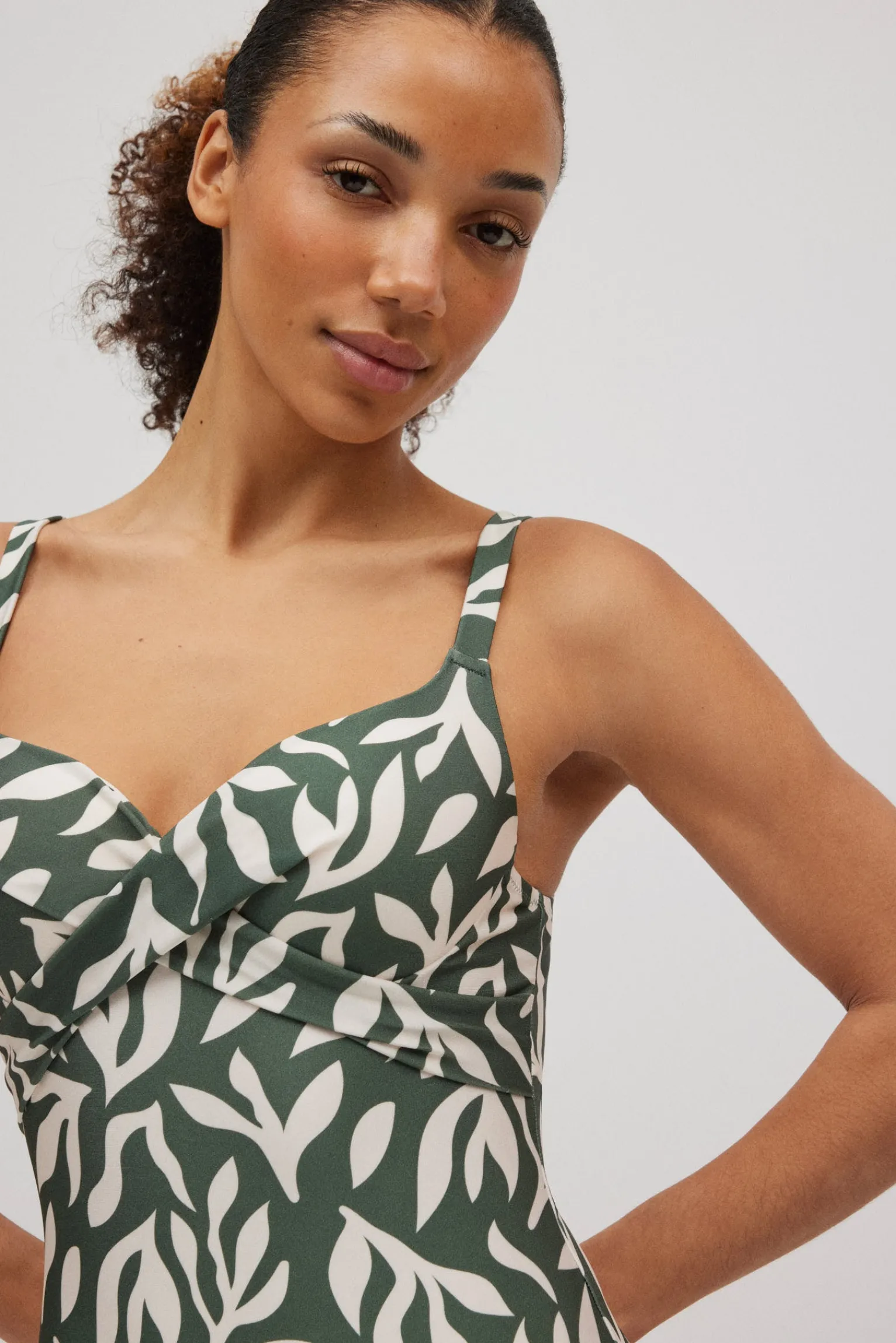 Descubre el bañador moldeador con aro y tejido con brillo, diseñado para ayudarte a moldear y definir la silueta con un ajuste favorecedor y femenino.