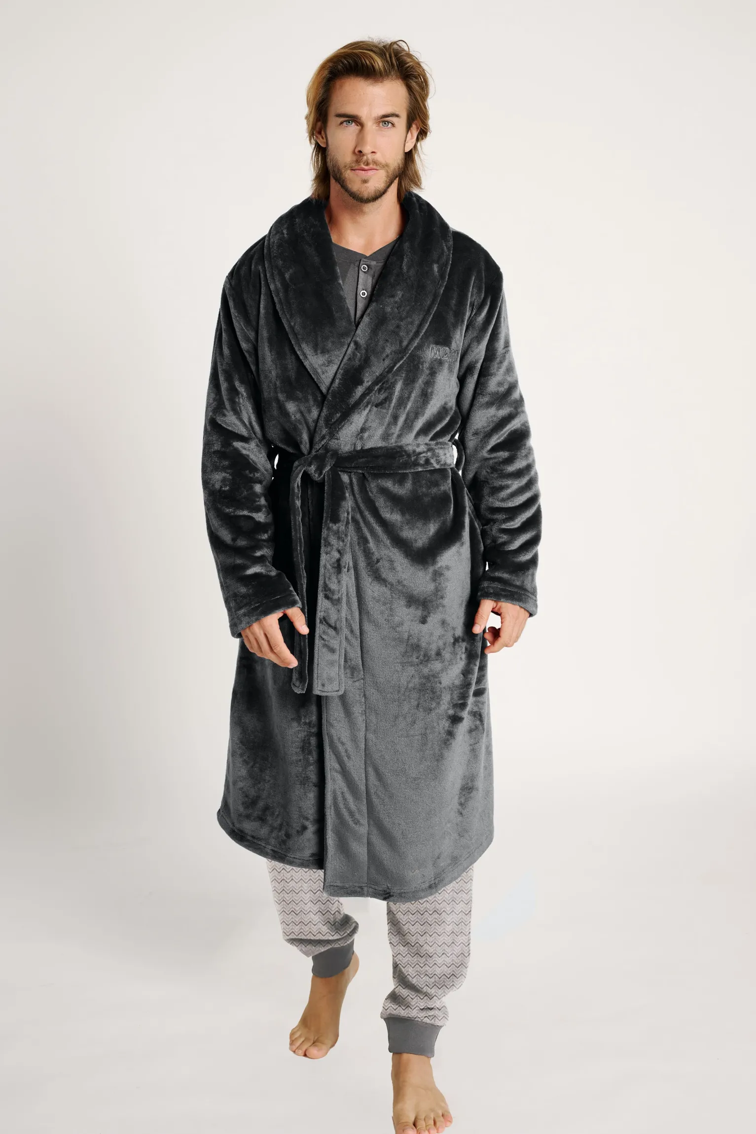 Batín largo de hombre efecto terciopelo.
