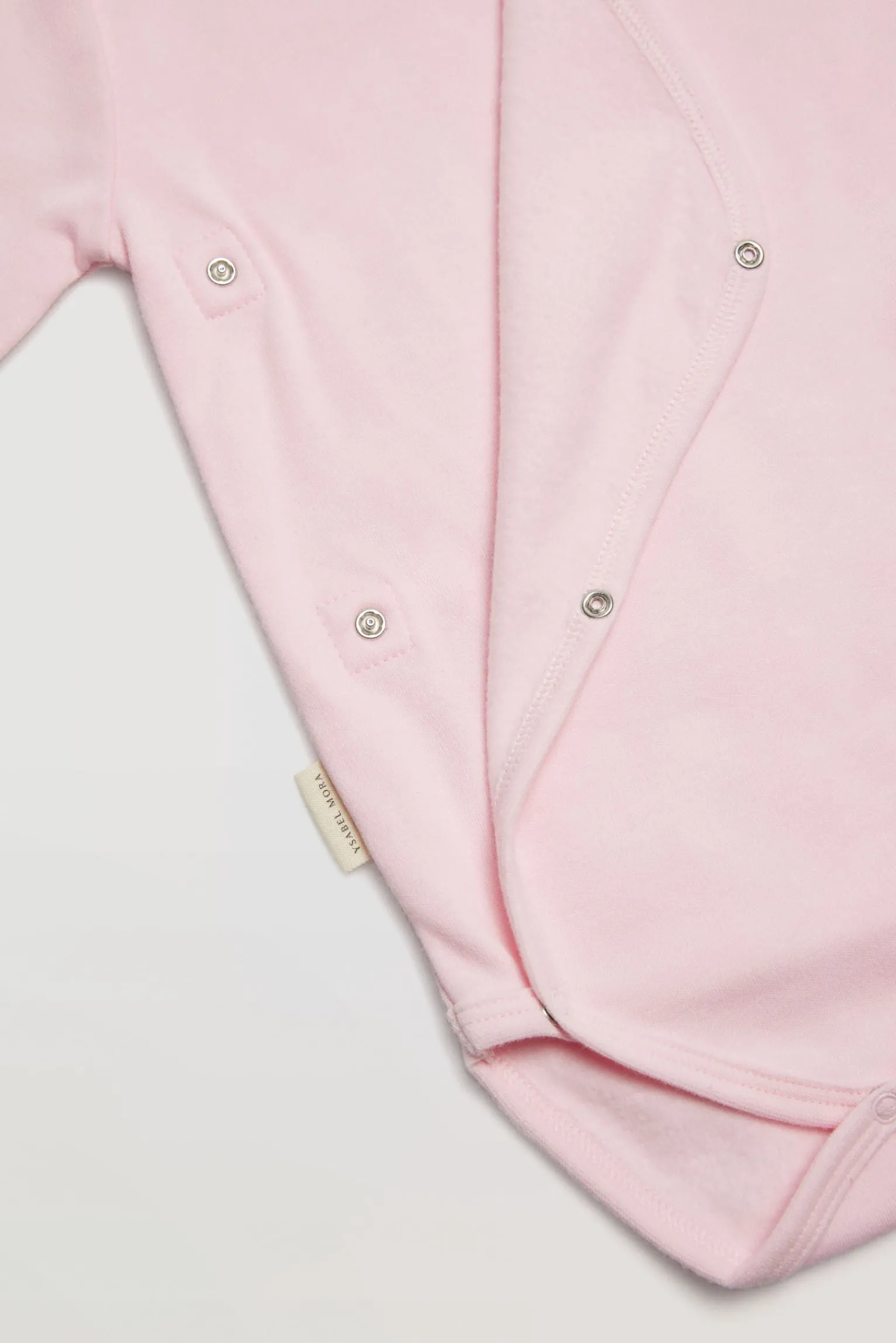 Body de bebé de manga larga con algodón natural. De estilo cruzado, con cuello pico. Prenda confeccionada en un tejido suave y agradable gracias a su interior afelpado. Color rosa.
