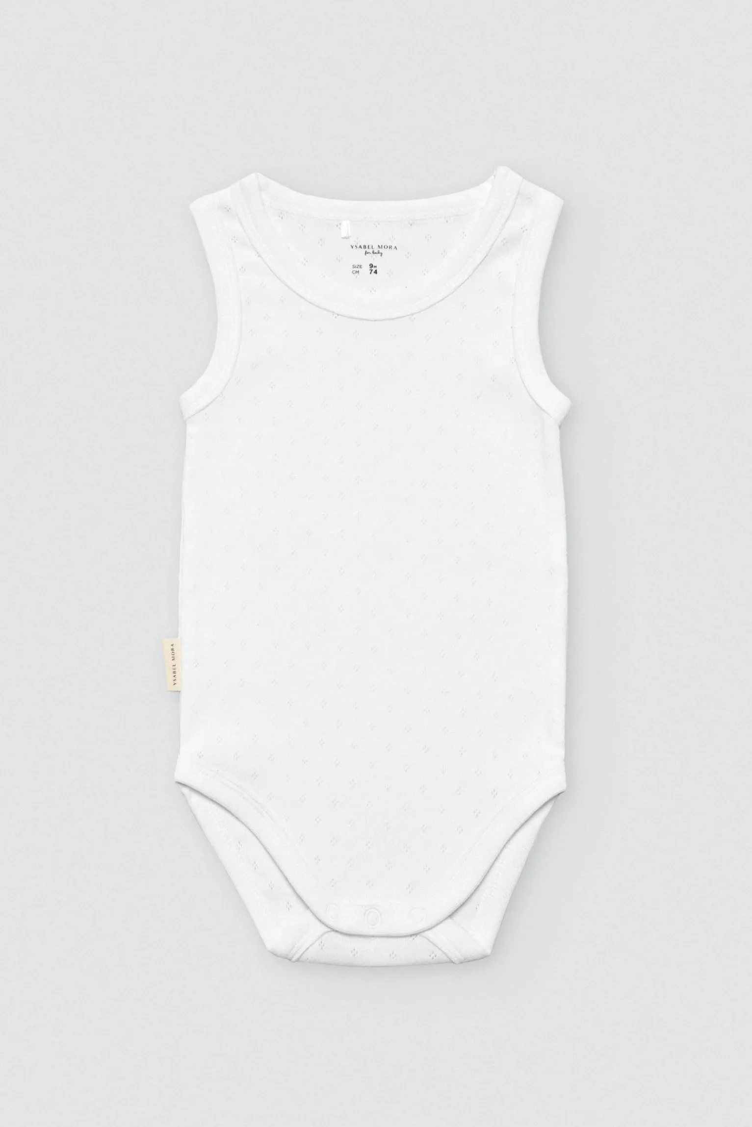 Body básico de tirantes anchos para bebé. Diseño unisex, calado y blanco, con botones a presión en la entrepierna. Tirantes anchos para ofrecer una mayor sujección al bebé. Confeccionado con algodón 100% natural, material que es suave y transpirable. ¡Esta prenda no puede faltar en el armario de tu bebé!