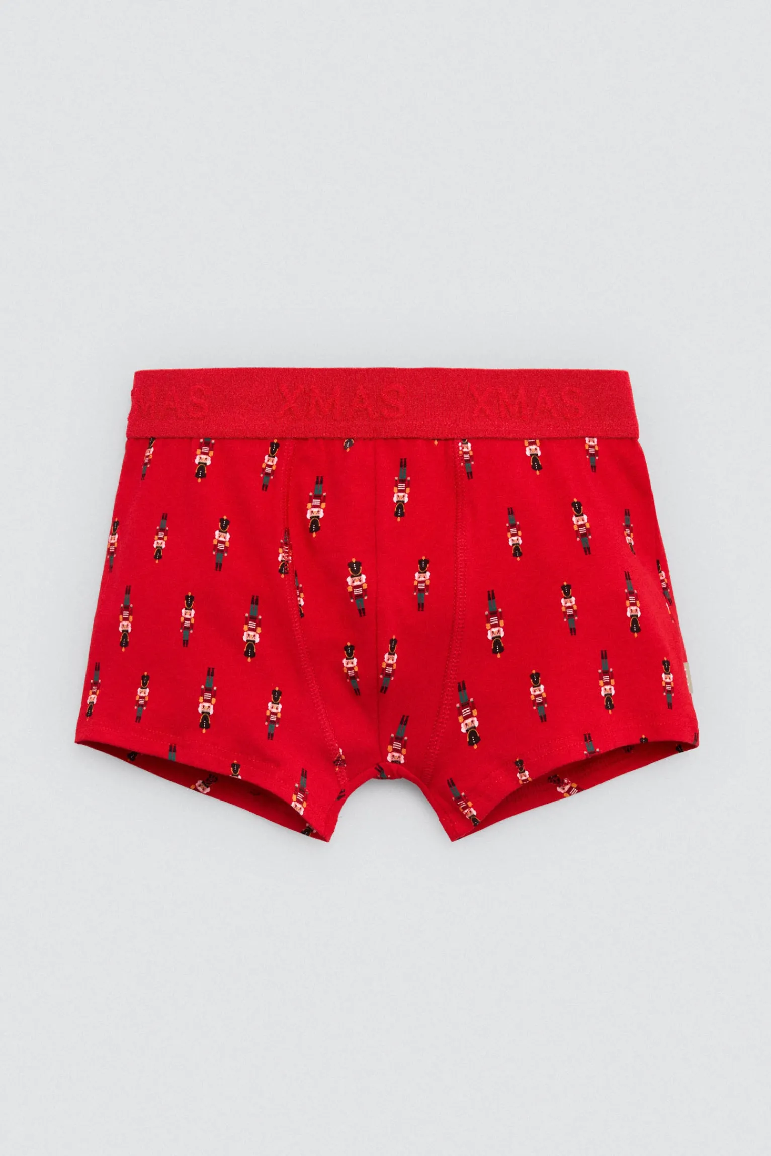 Bóxer juvenil con estampado de cascanueces sobre fondo rojo. Diseño de Navidad, perfecto para estas fiestas.