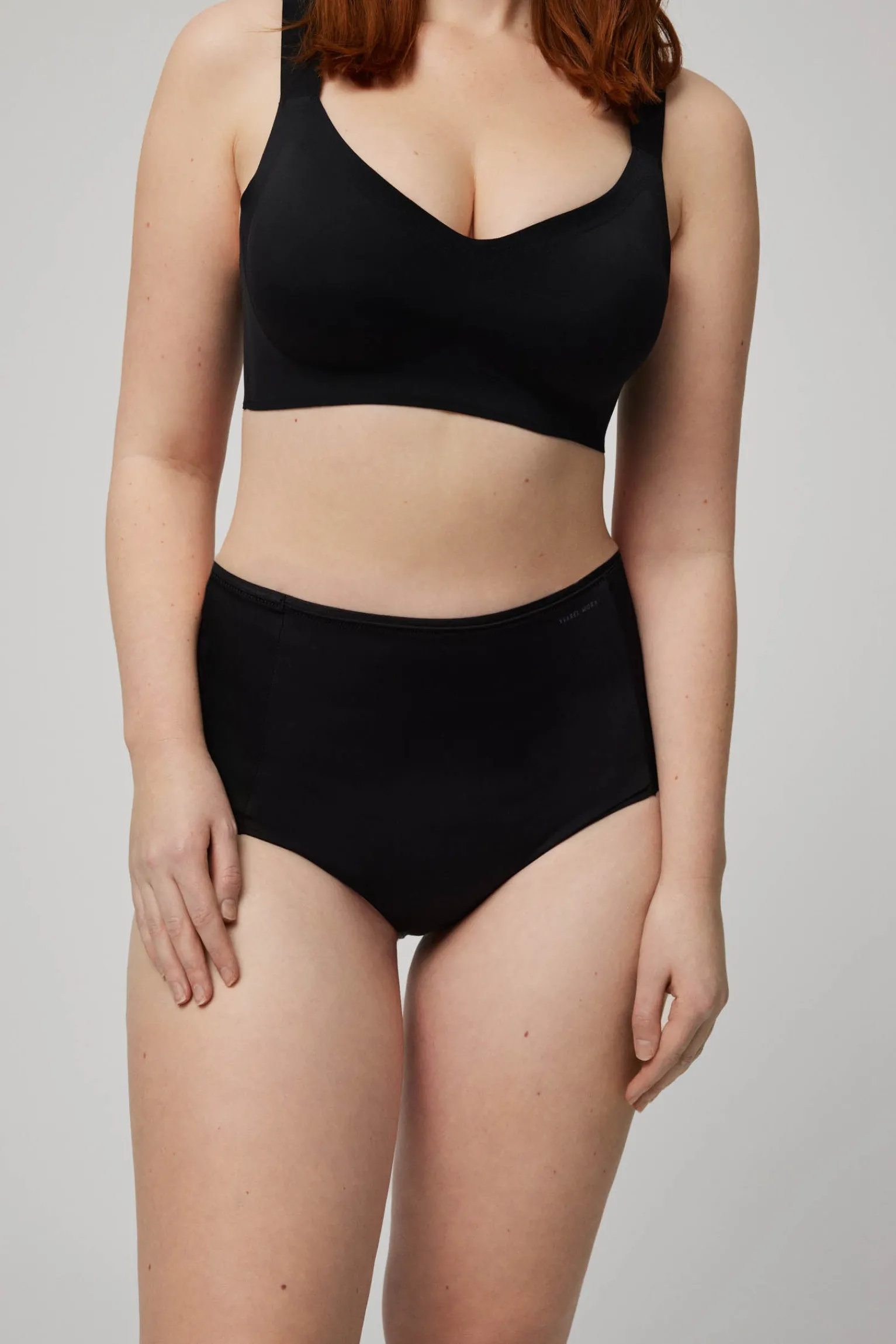 Essentials control. Braga alta de control, diseñada para proporcionar soporte y control en toda la zona abdominal, en la zona de los gluteos y de la cintura. Además, la braga tiene acabados invisibles, por lo que no hay costuras visibles o molestas que pueden causar rozaduras o incomodidad. Esto crea un aspecto más suave y elegante, sin la apariencia de bultos o líneas visibles.