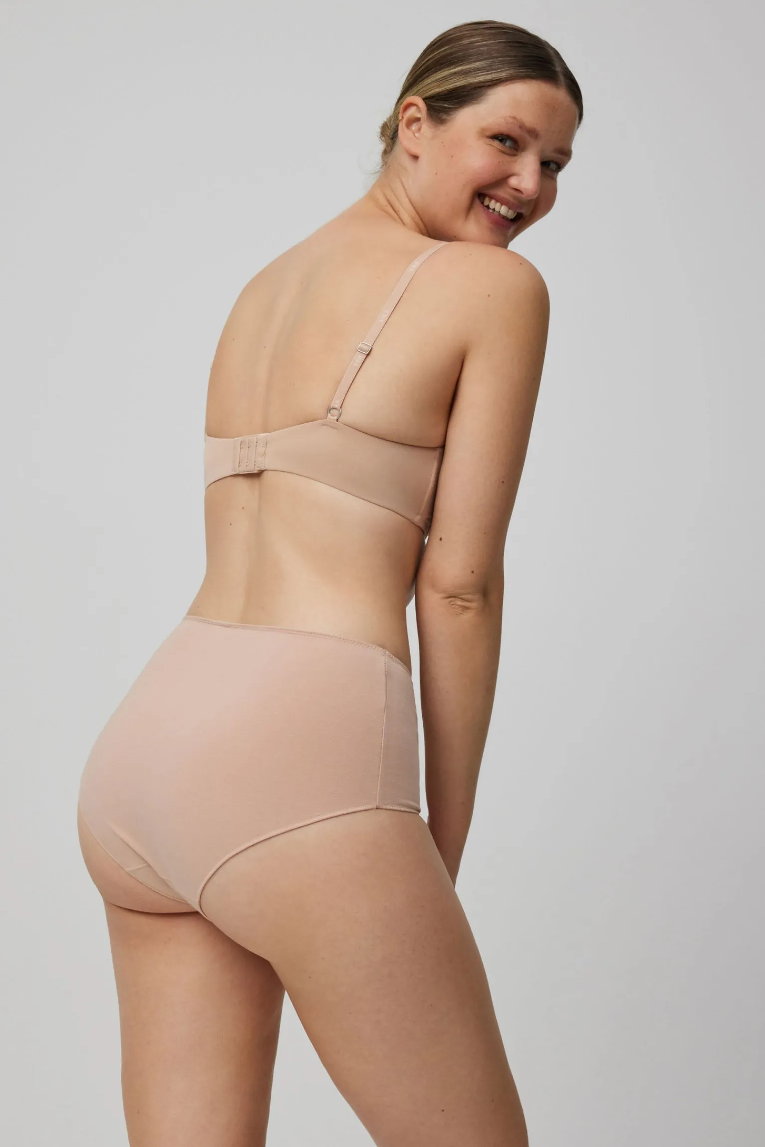 Braga alta en tejido Cotton Nature. Las fibras naturales de este material aportan un extra de suavidad a la prenda. Sus acabados con costuras planas invisibles evitan las marcas y favorecen una mayor adaptabilidad y un ajuste ergonómico perfecto. Modelo básico de gran confort pensado para el día a día. Decoradas con blonda en los laterales. Confeccionadas con material antialergénico.