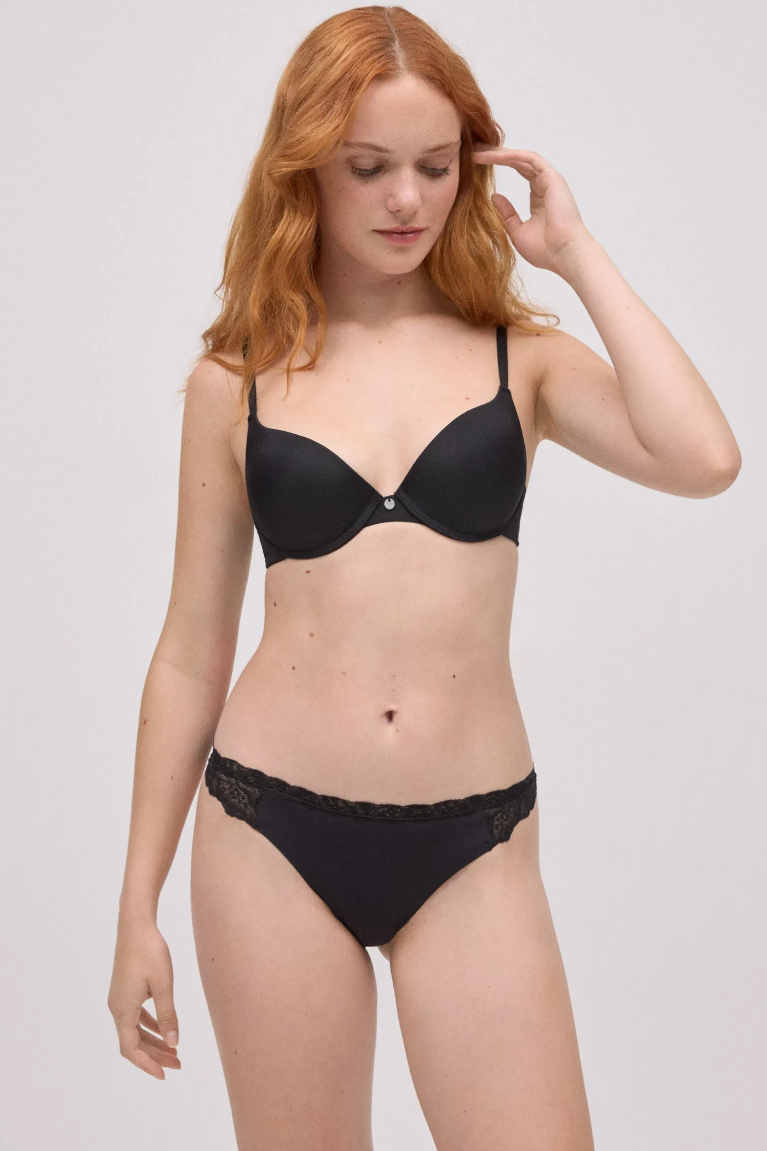 Braga brasileña con diseño elástico y corte láser, que garantiza un ajuste suave y sin marcas. Confeccionada en tejido cómodo y diseñada con detalles de encaje en los laterales y en la parte trasera, aporta un toque sofisticado sin renunciar al confort. Perfecta para looks ajustados o para el día a día con estilo.
