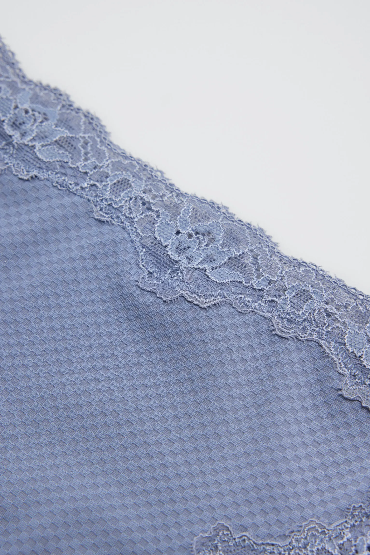Braga de cobertura midi de lencería en color azul. Textura de cuadros jacquard con bordes de delicado encaje.