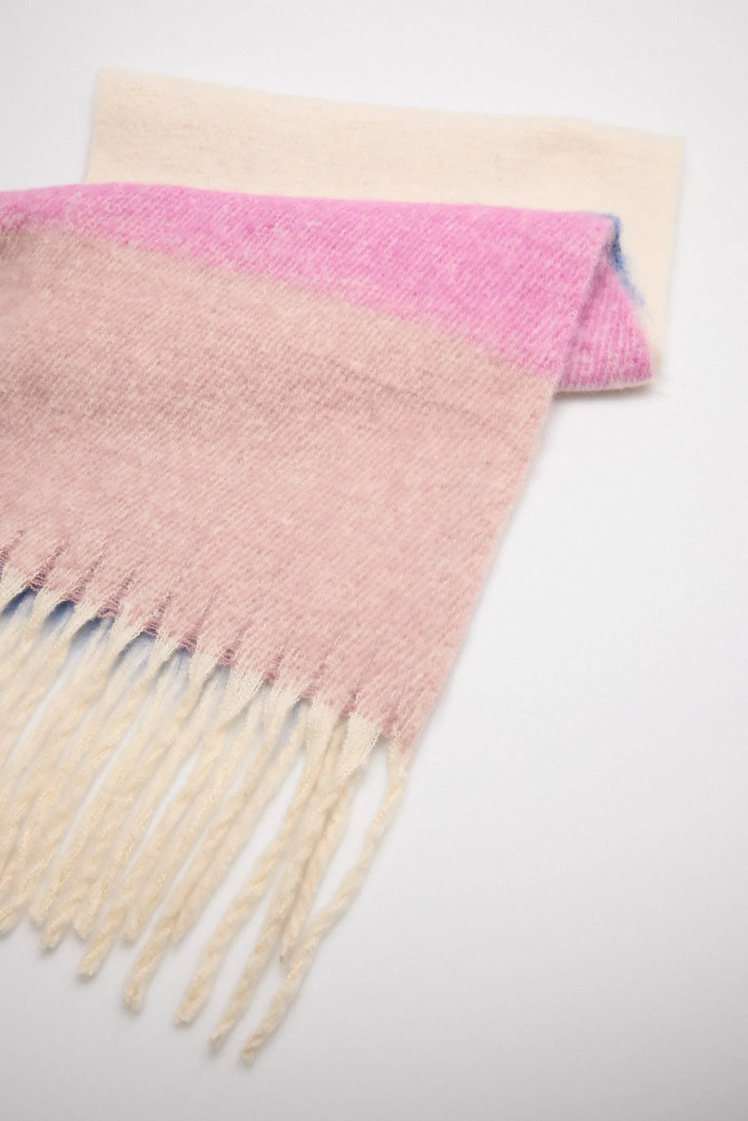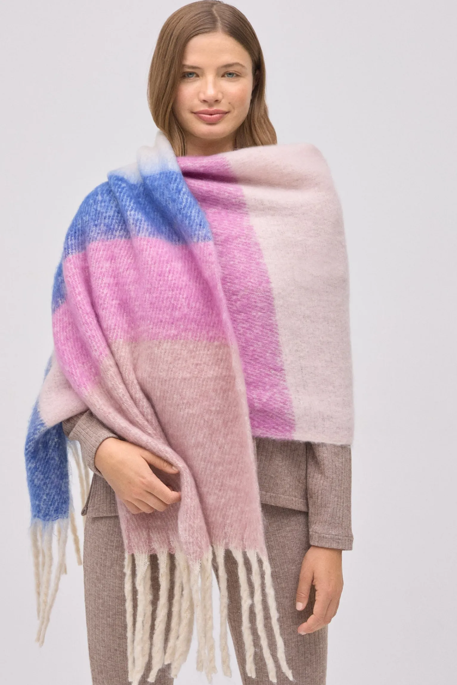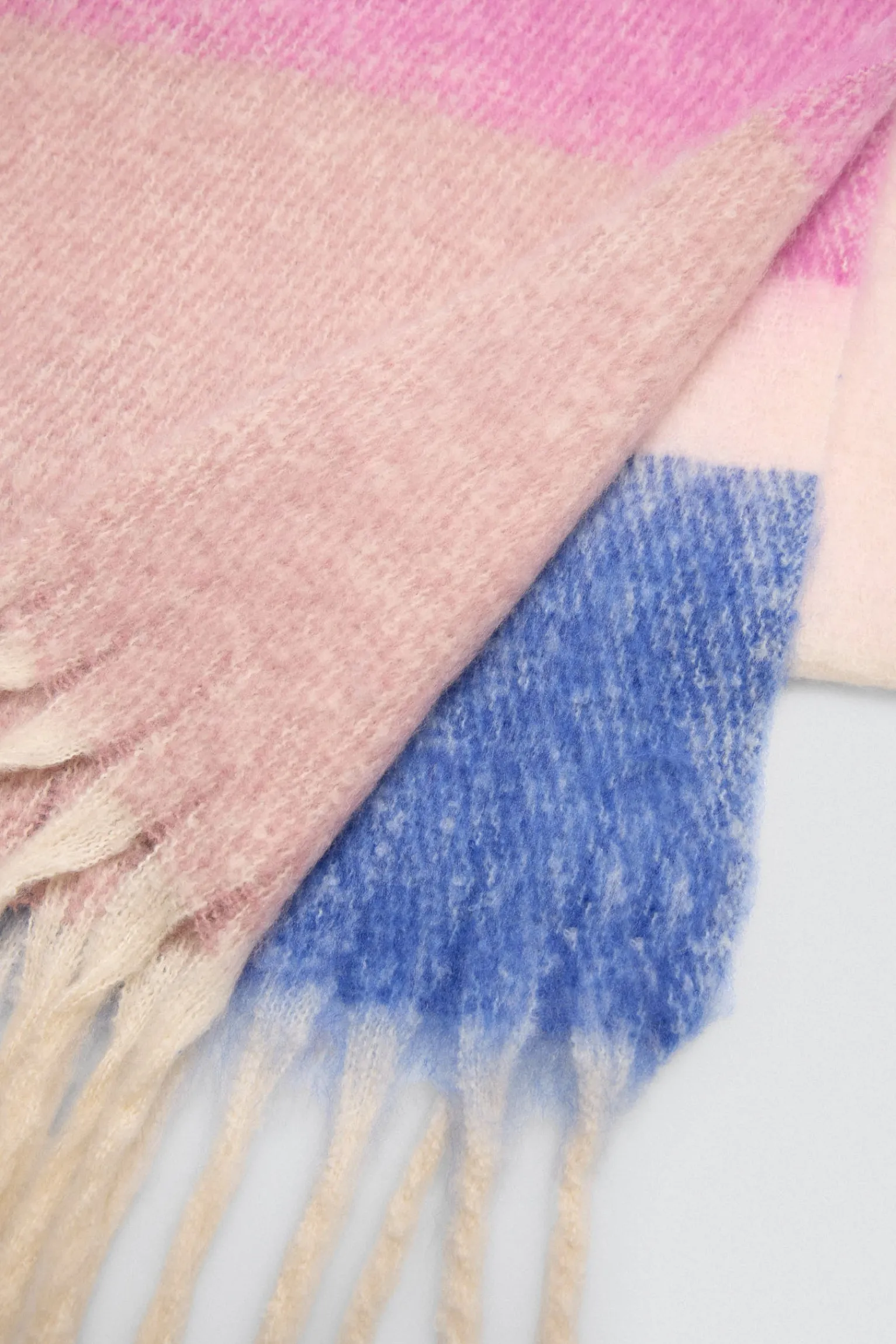 Tonos pastel y textura peluche. Esta bufanda rayada en rosa de tipo pashmirna aporta un aire romántico y delicado al look invernal.