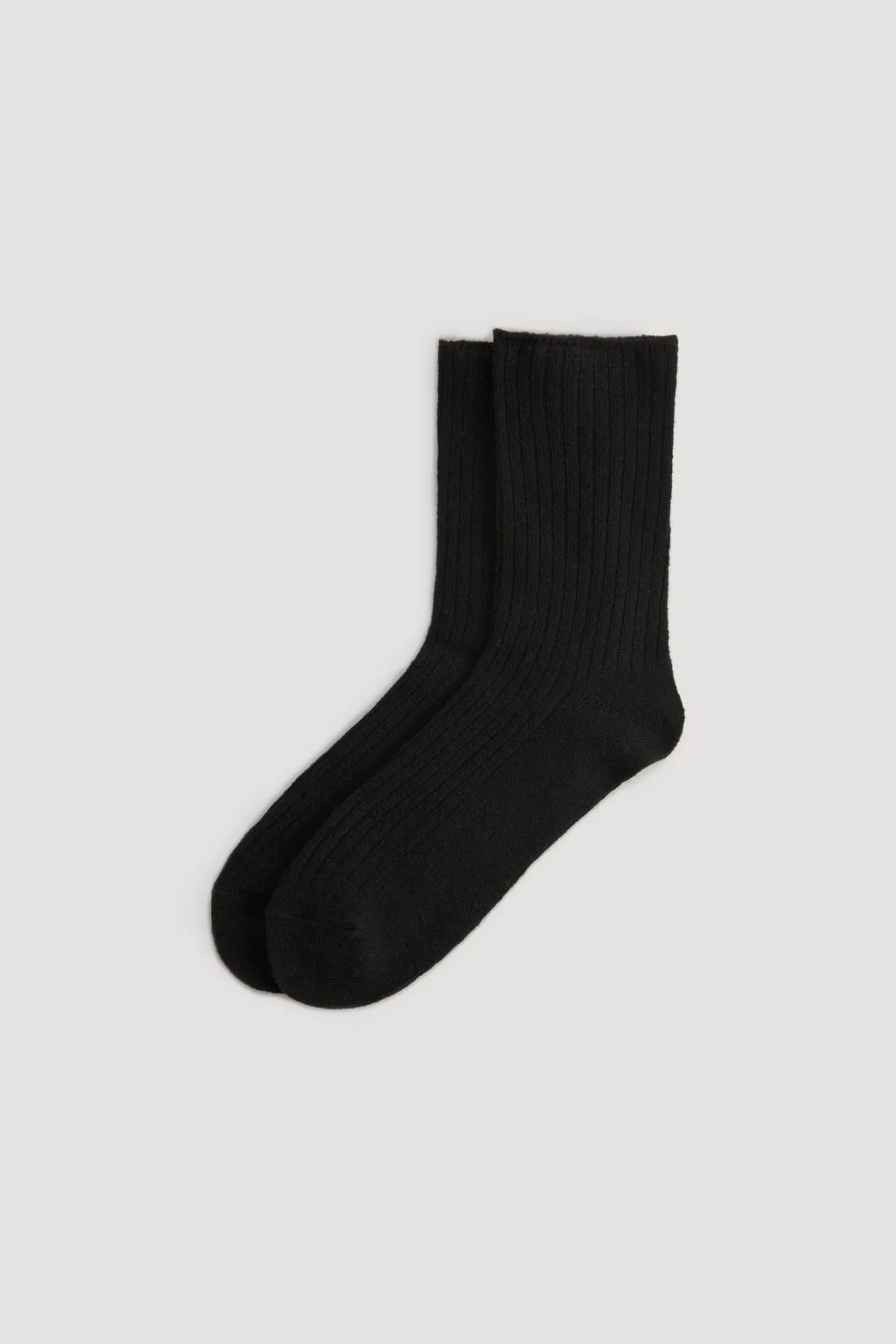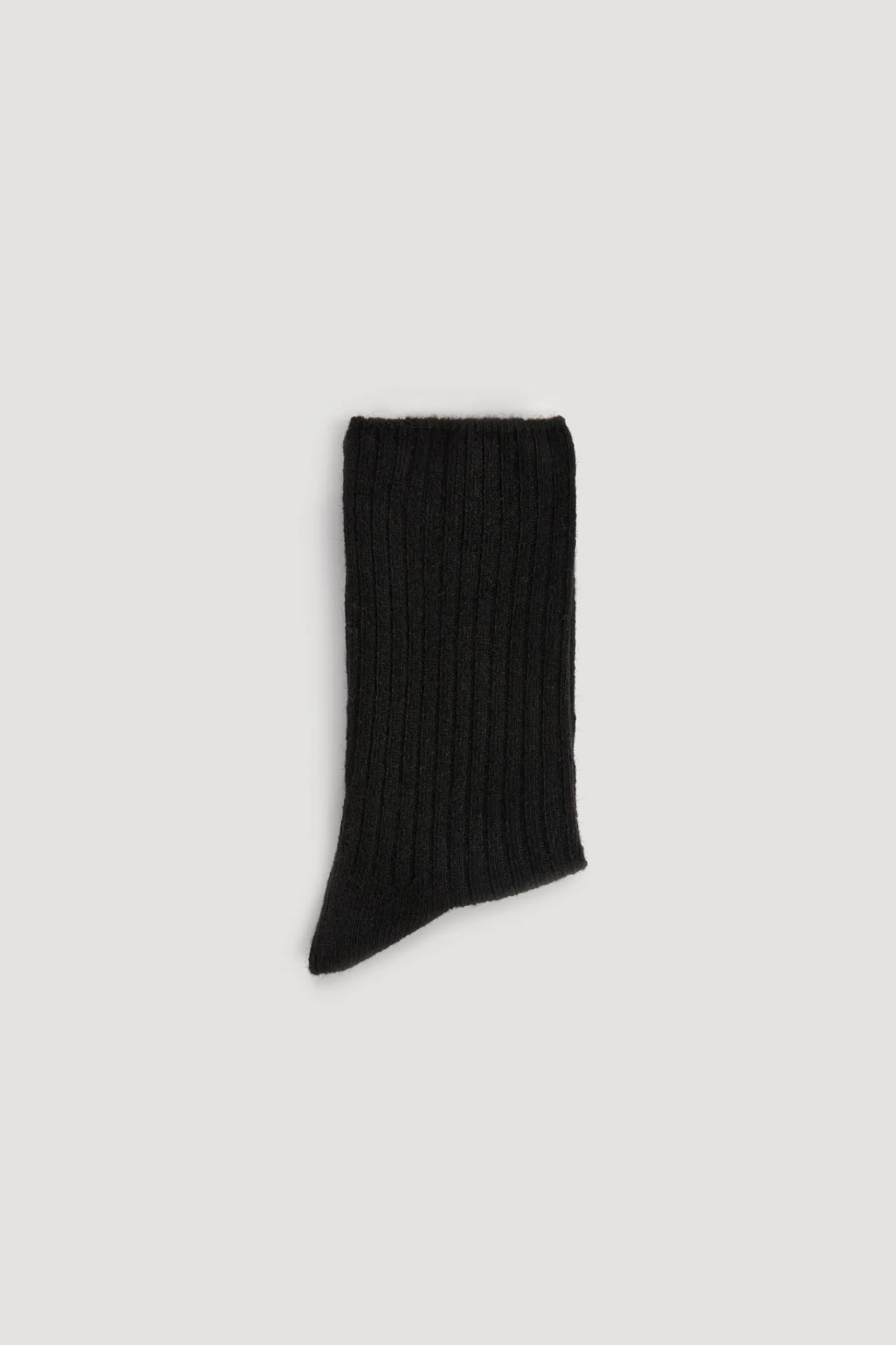 Calcetines de lana para hombre sin puño de color negro. Textura canalé.