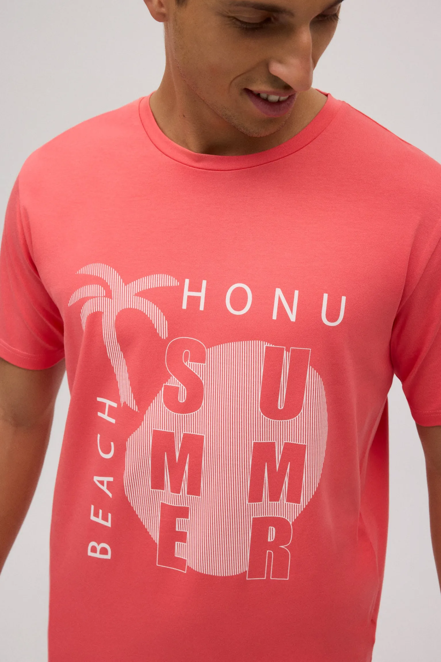 Camiseta para hombre de manga corta estampada. Tiene un corte regular fit, adaptándose al cuerpo. Fabricada con algodón natural, siendo suave y transpirable para su uso diario.