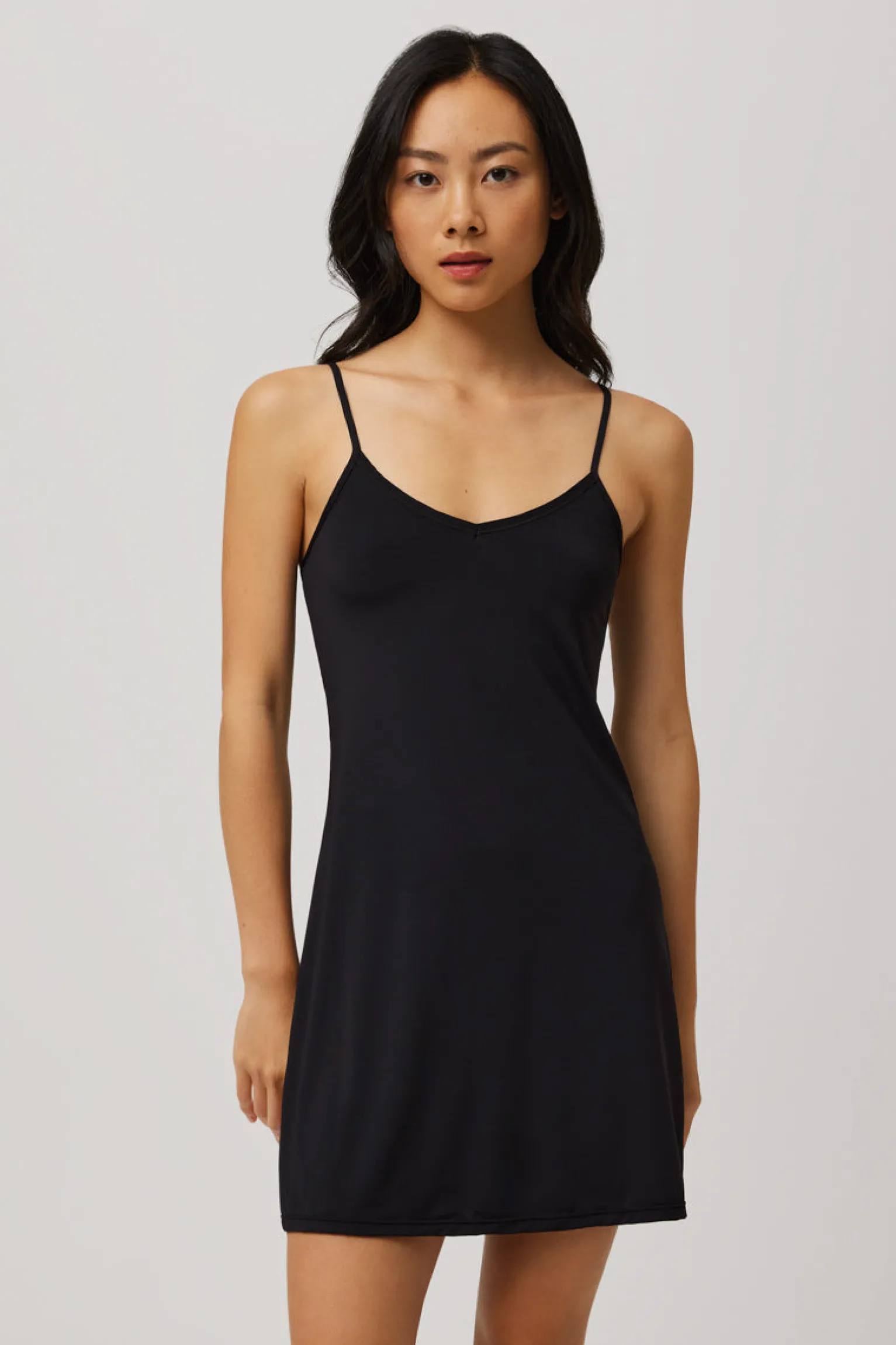 Vestido liso de tirantes cortos.