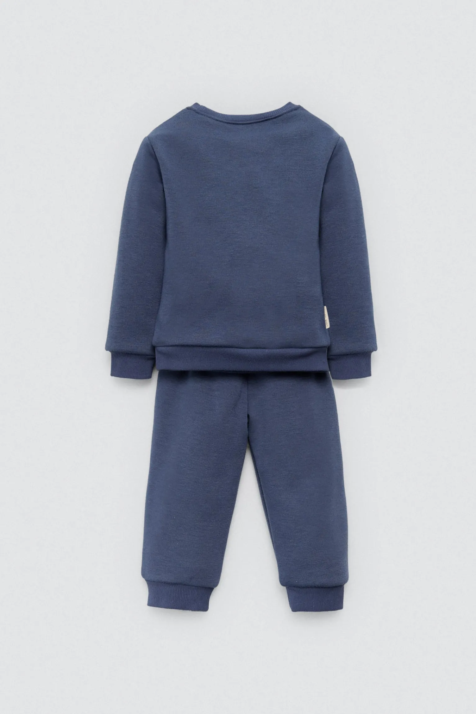 Conjunto de chándal básico para bebé ideal para el día a día. Compuesto por una sudadera de manga larga y un pantalón jogger con interior afelpado, ofrece máxima suavidad y libertad de movimiento. Su diseño delicado con detalle bordado lo convierte en una prenda práctica y adorable para cualquier ocasión.