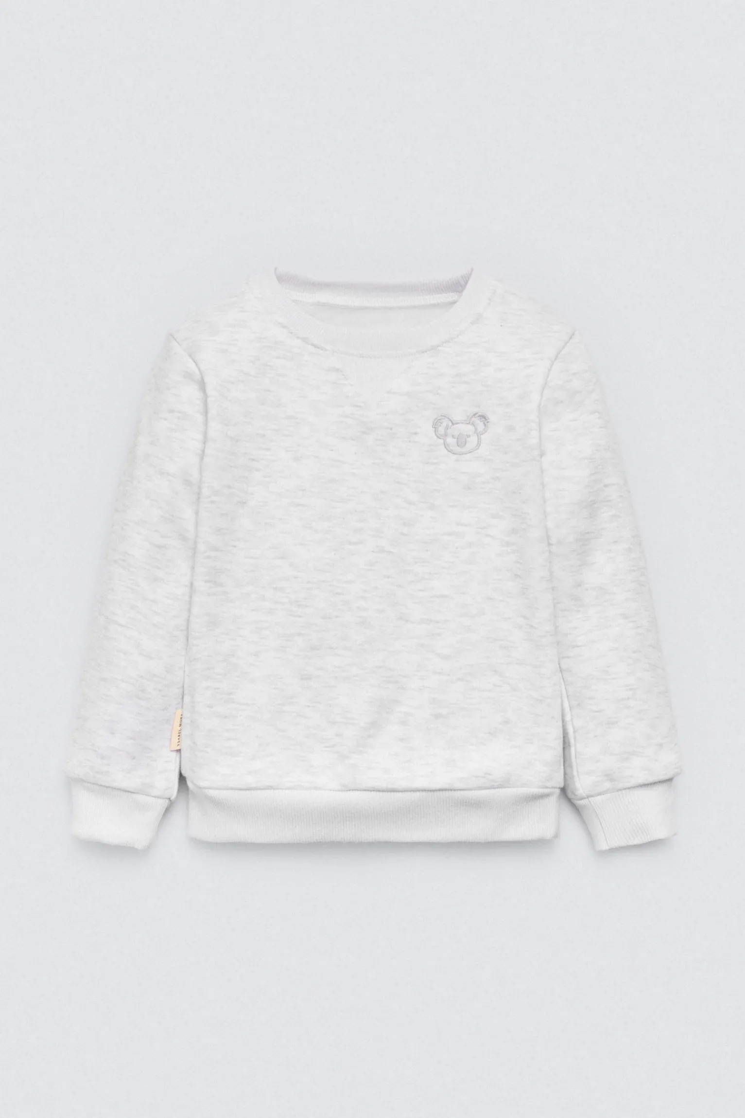 - Sudadera de manga larga con cuello redondo y puños acanalados.