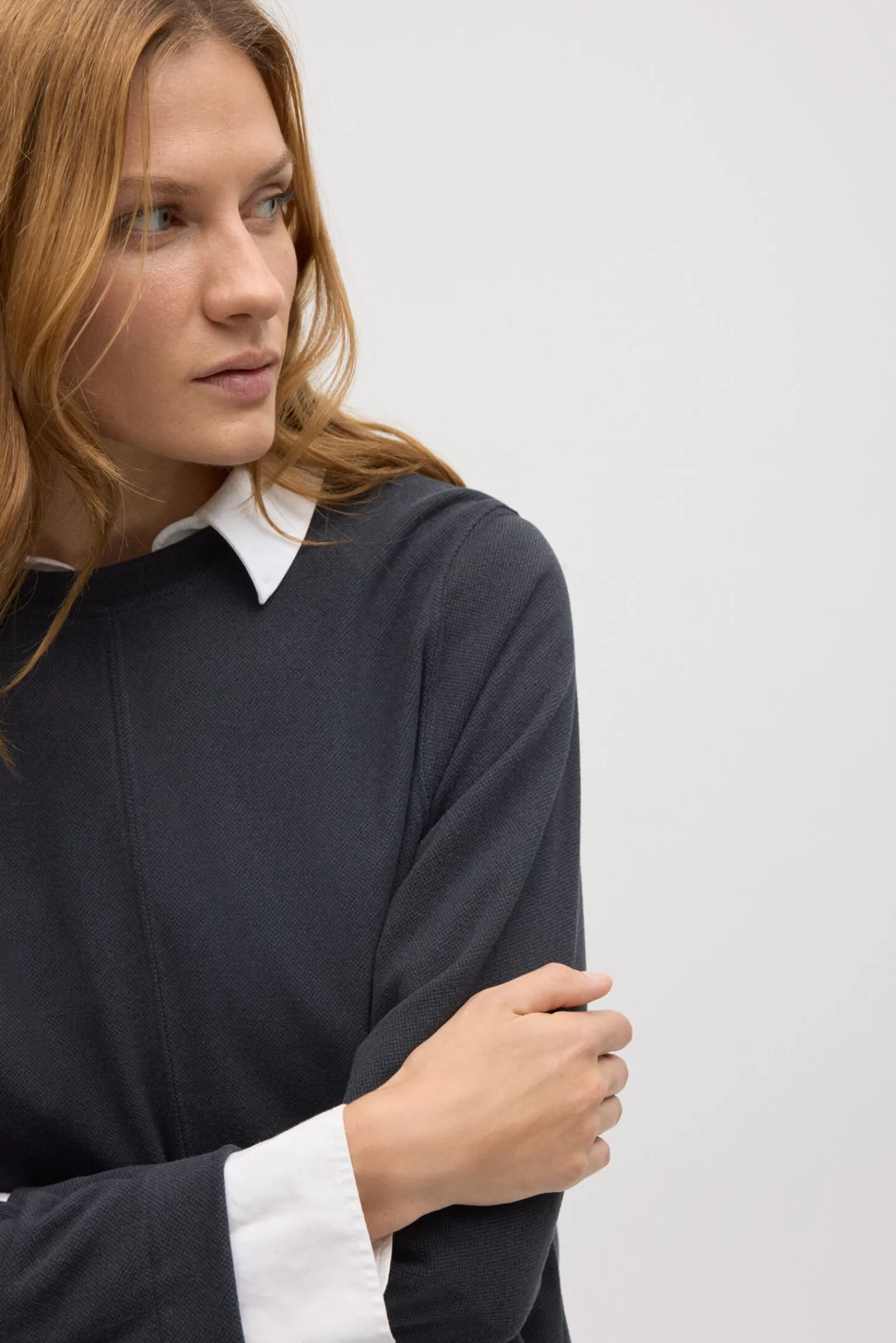 Este jersey cálido de cuello redondo es una pieza esencial en tu armario de invierno. Con su textura de cuadros jacquard, ofrece un toque sofisticado para una ropa cómoda de oficina o para un día relajado. La suavidad del tejido te garantiza comodidad durante todo el día.