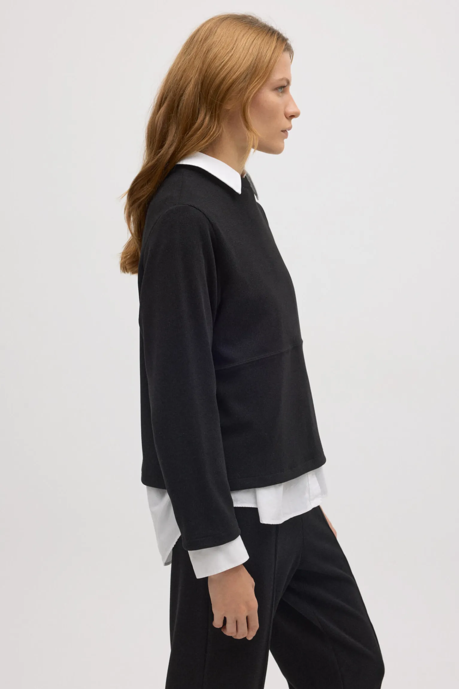 Este jersey cálido de cuello redondo es la prenda versátil que no puede faltar en tu armario. Con su diseño sencillo y elegante, es ideal para combinar con una camisa debajo y crear looks tanto informales como más sofisticados. Perfecto para mantenerte abrigada sin perder el estilo, es la opción ideal para cualquier ocasión.