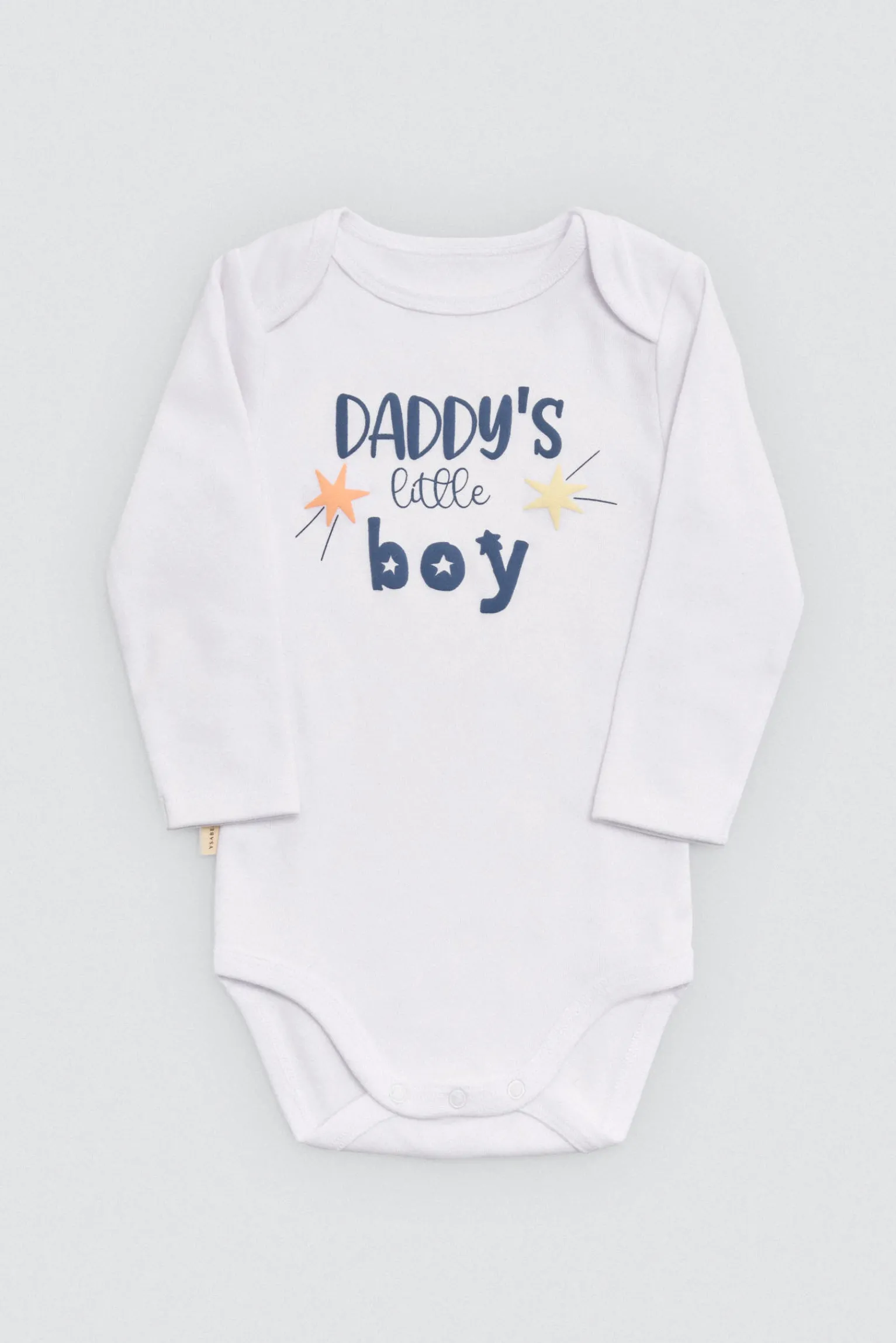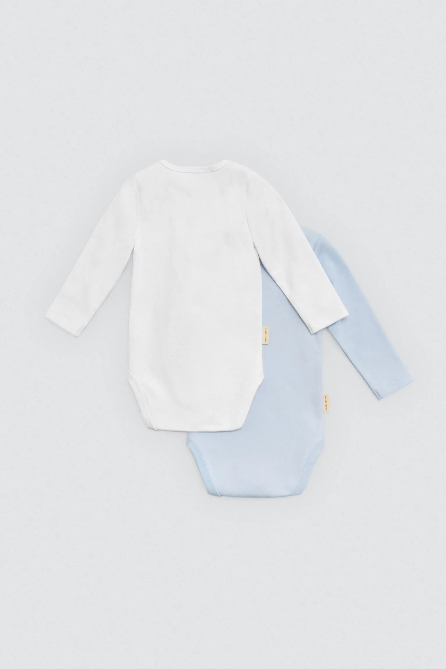 Set de 2 bodies de manga larga para bebé niño con interior afelpado. Tejido de algodón natural con mensajes estampados. Suaves, cómodos y perfectos para uso diario o regalar.