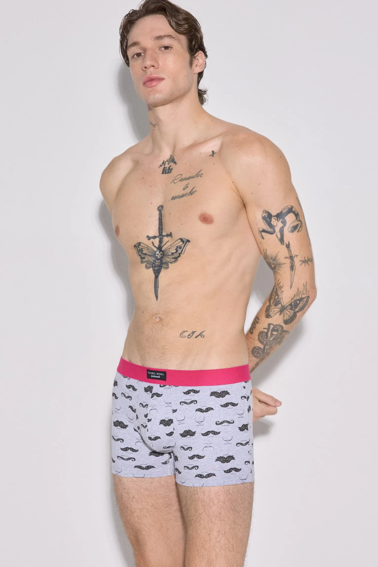 Pack de 2 bóxers estampados de la colección Sockarrats, confeccionados en algodón natural para un ajuste cómodo y transpirable. Este pack combina dos diseños únicos: uno con estampado de botellas y otro con bigotes, fiel al estilo creativo y desenfadado de Sockarrats. Una opción perfecta para quienes buscan básicos con personalidad.