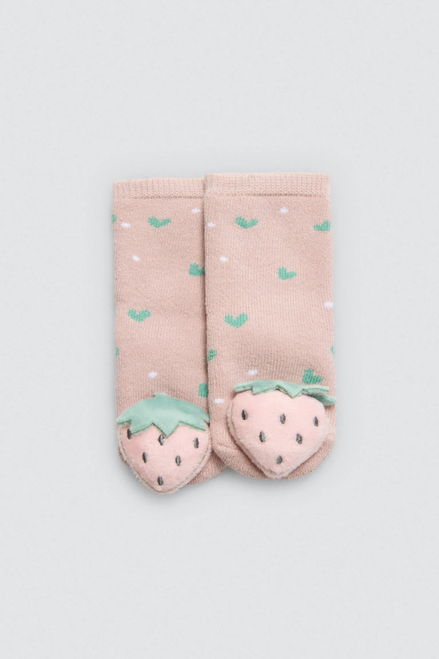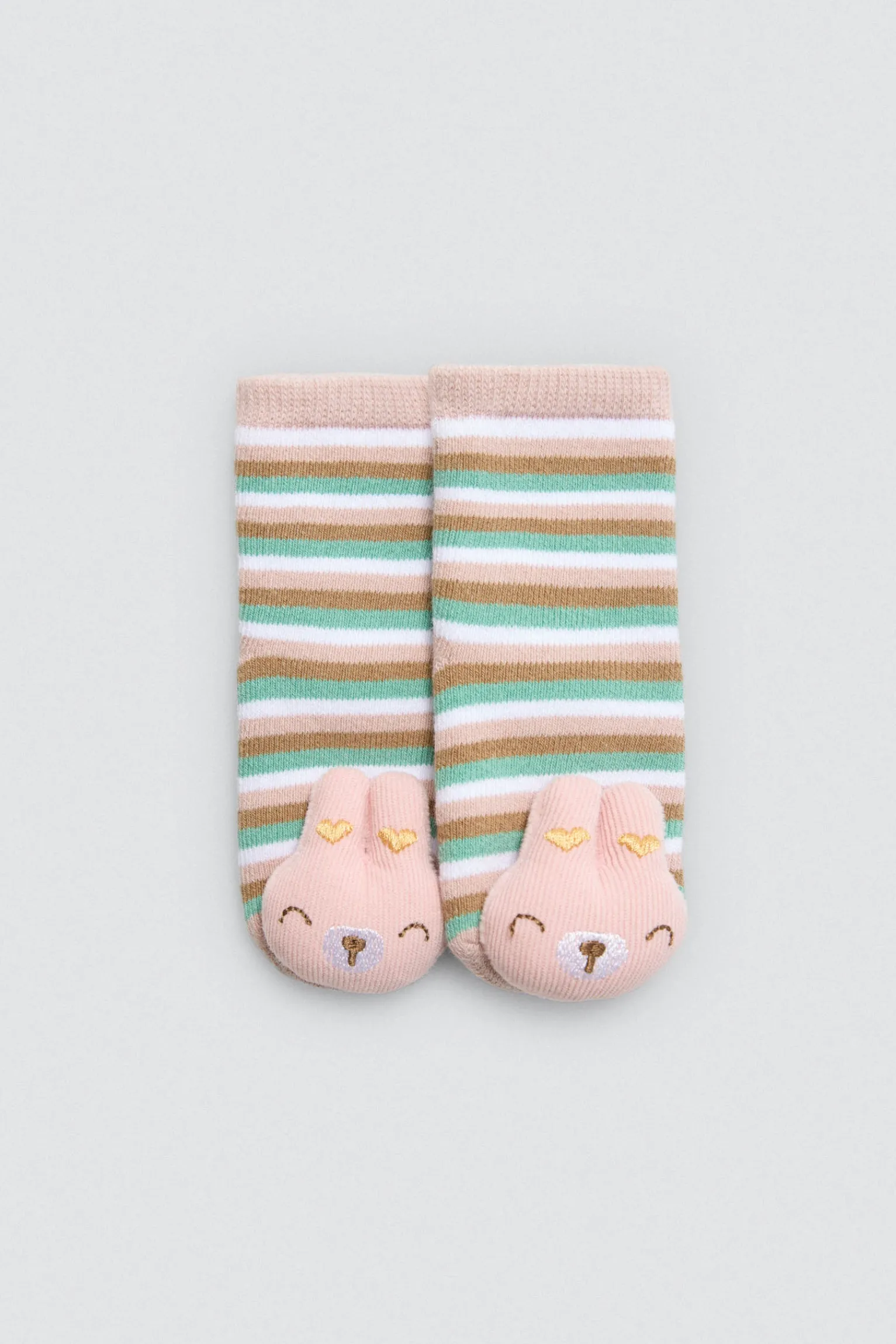 Pack de 2 pares de calcetines para bebé niña. Calcetines térmicos y estampados con aplique sensorial de sonajero. Puño antipresión.