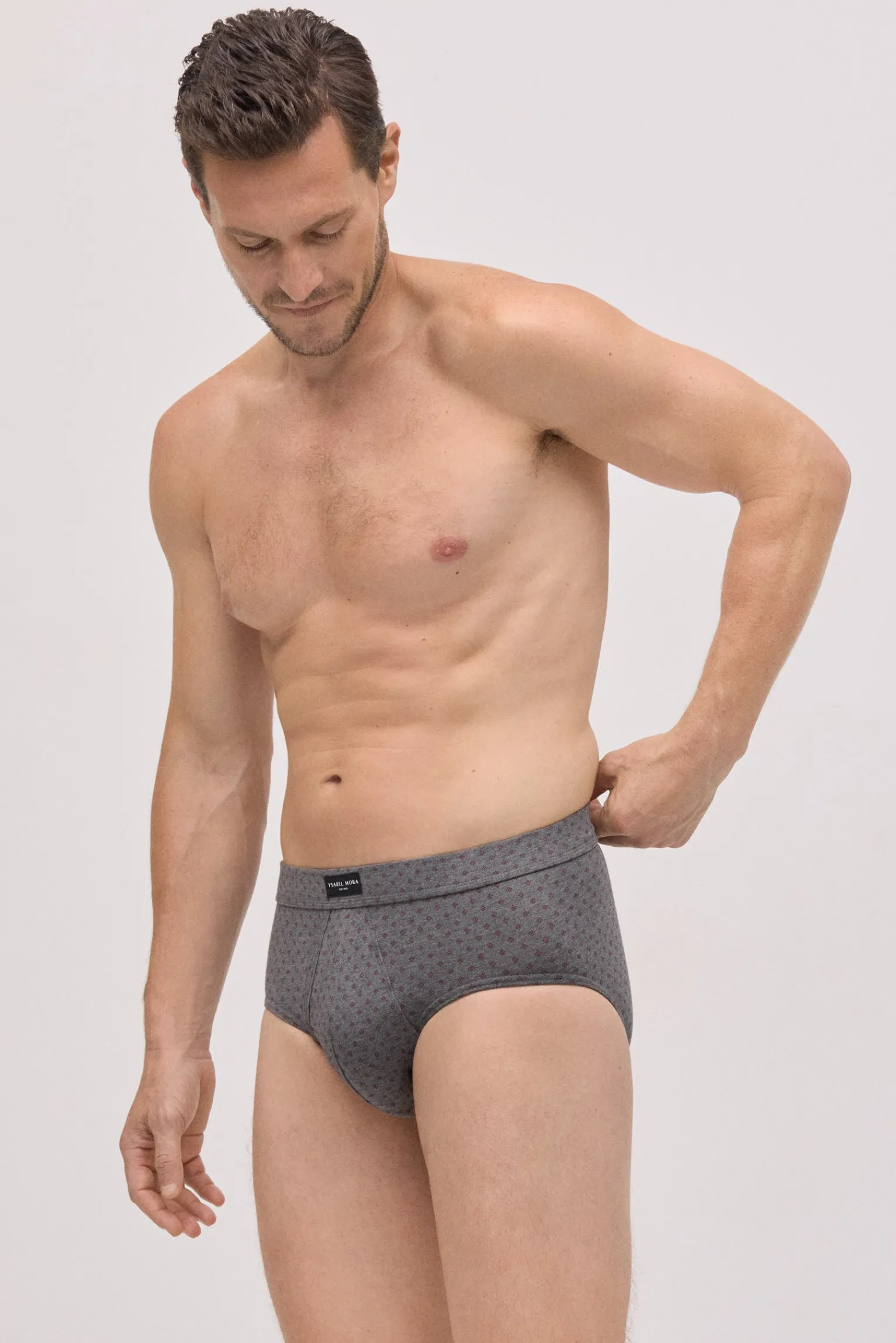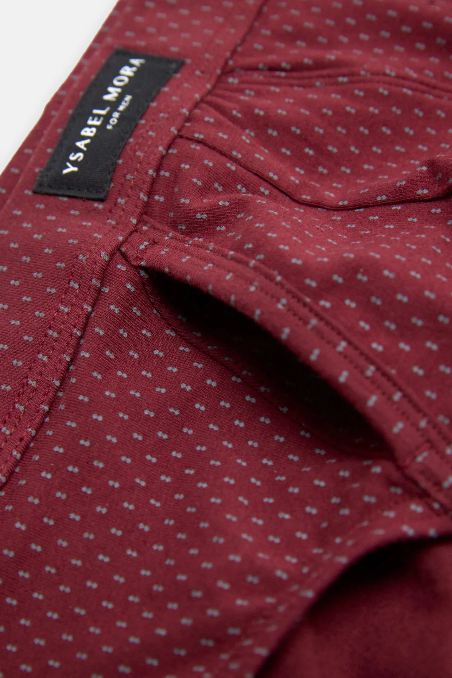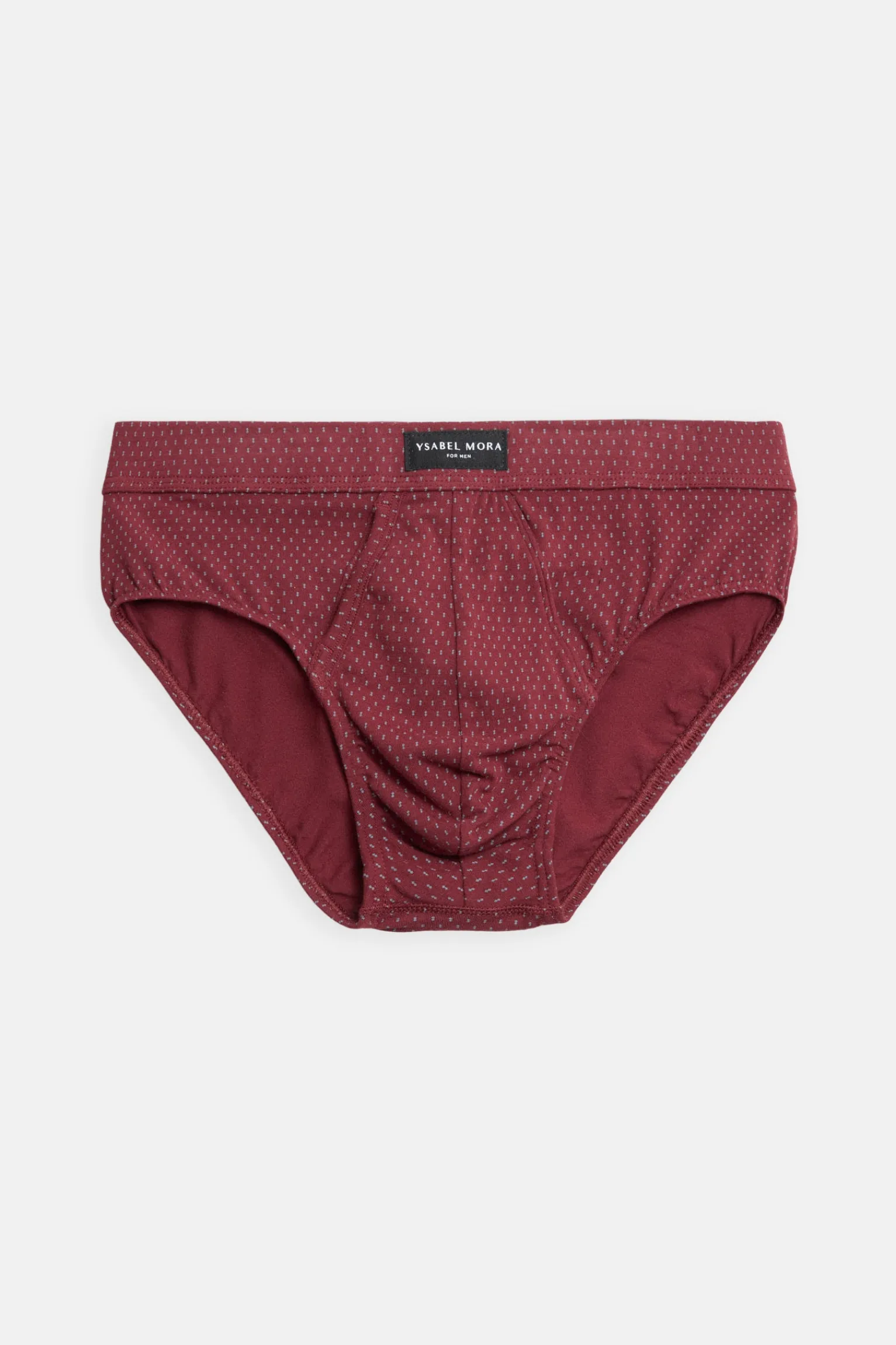 Pack de 2 slips estampados confeccionados en algodón natural. Cada modelo presenta un diseño geométrico distinto en tonos burdeos y gris, con apertura frontal que aporta funcionalidad y comodidad. Una propuesta ideal para el uso diario.