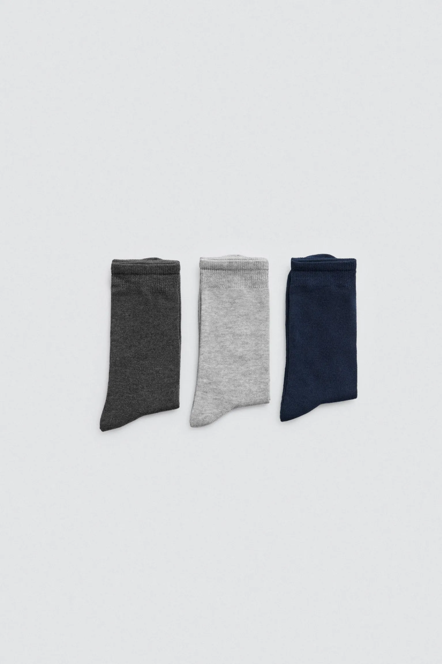 Pack de 3 pares de calcetines de bambú cálidos en colores neutros para mujer. El bambú es una fibra natural transpirable, antiolores, suave y cómoda. Puño antipresión. Incluye un par de calcetines de cada color: gris marengo, gris claro y azul marino.