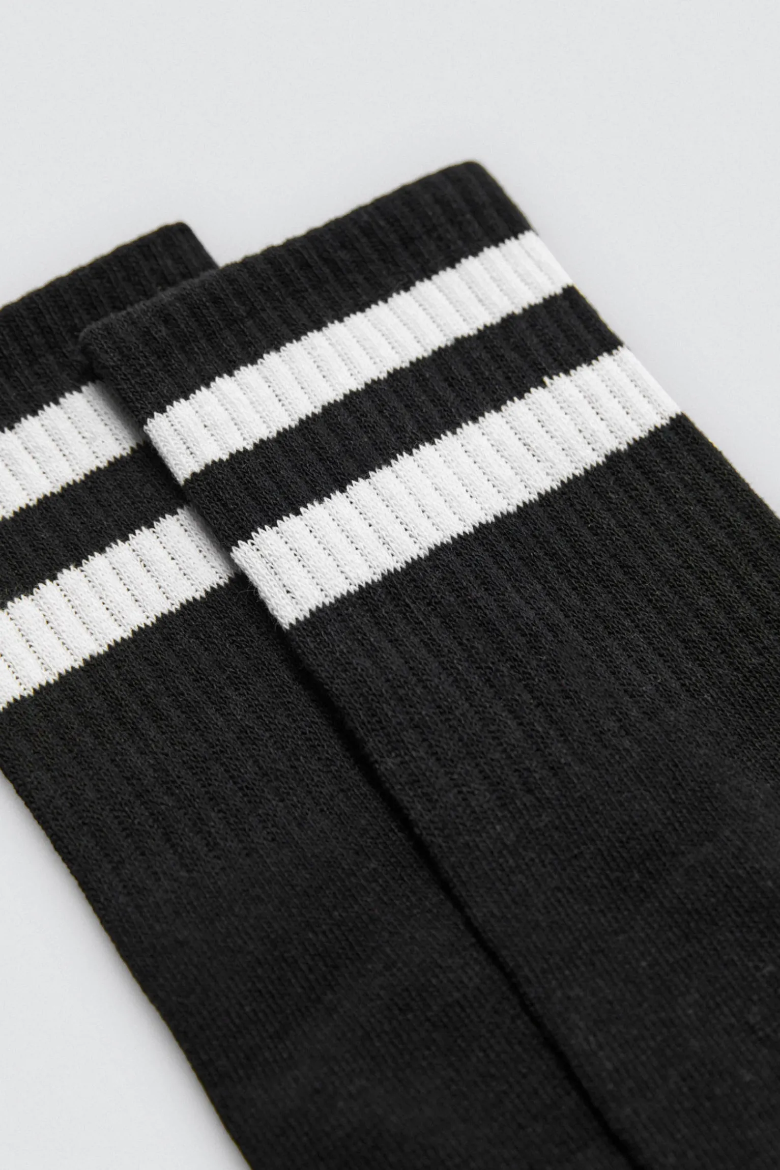 Calcetines deportivos largos con puño a rayas negros. Pack de 3 pares.