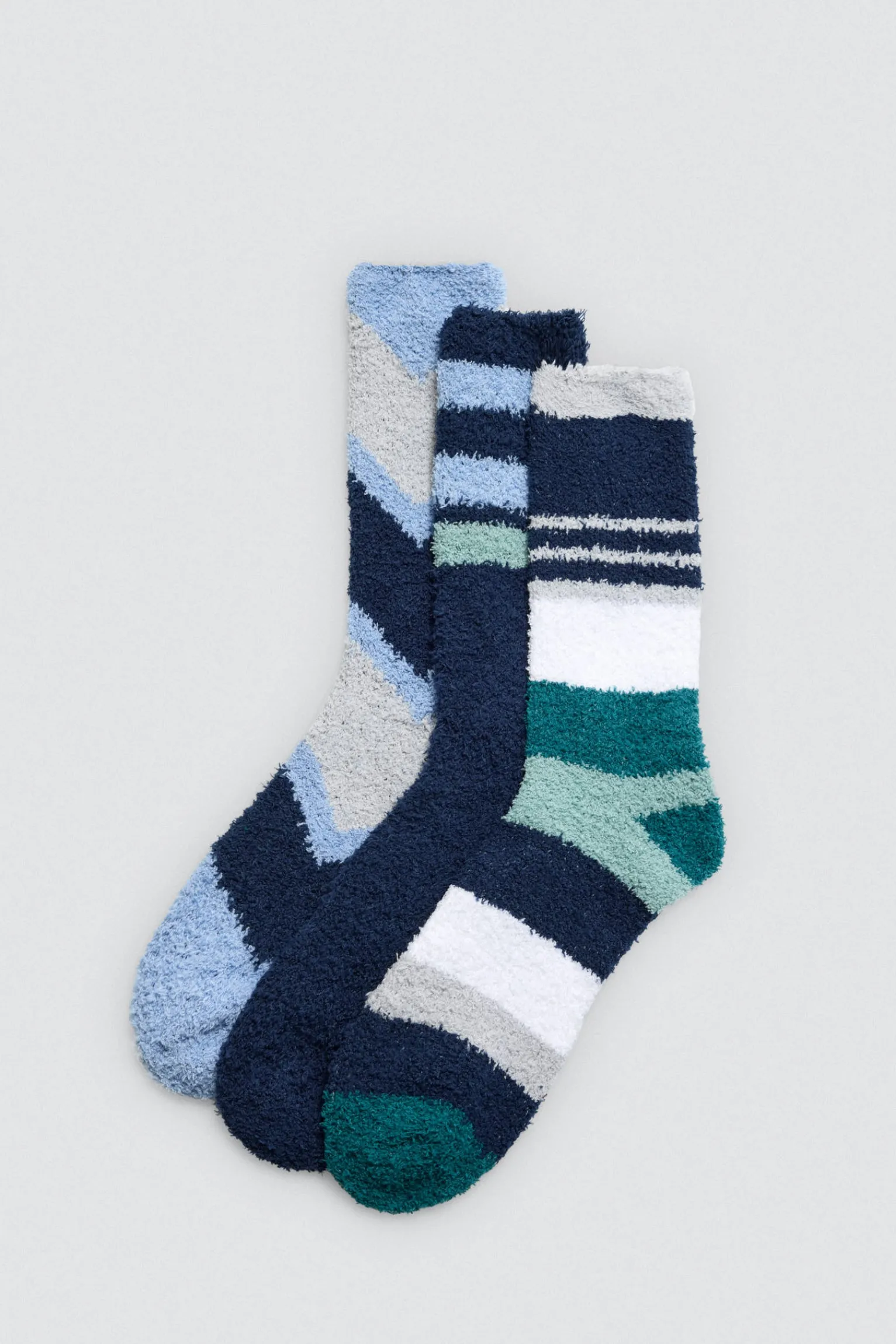 Pack de 3 calcetines altos de franela con puño antipresión y estampado a rayas