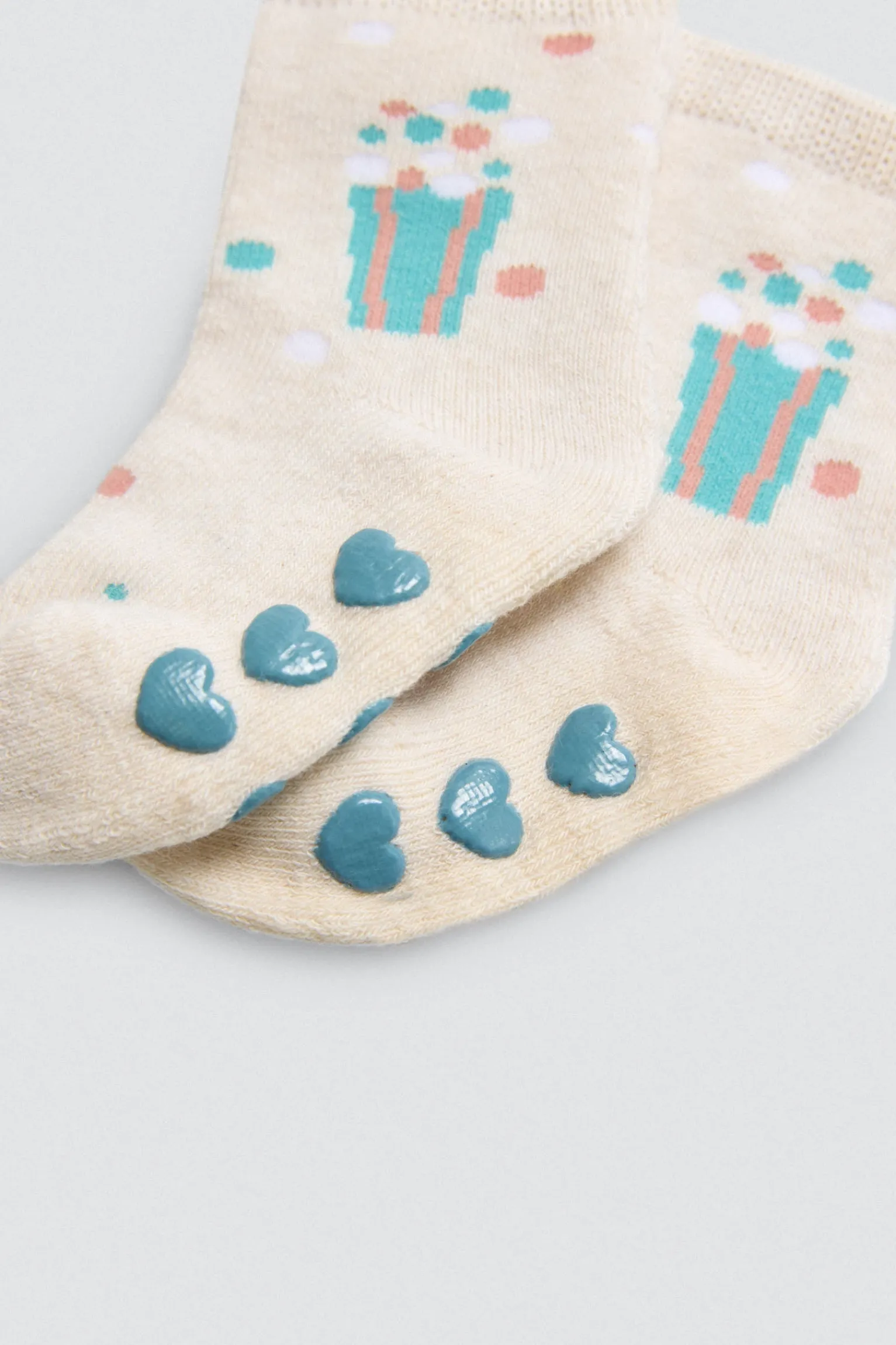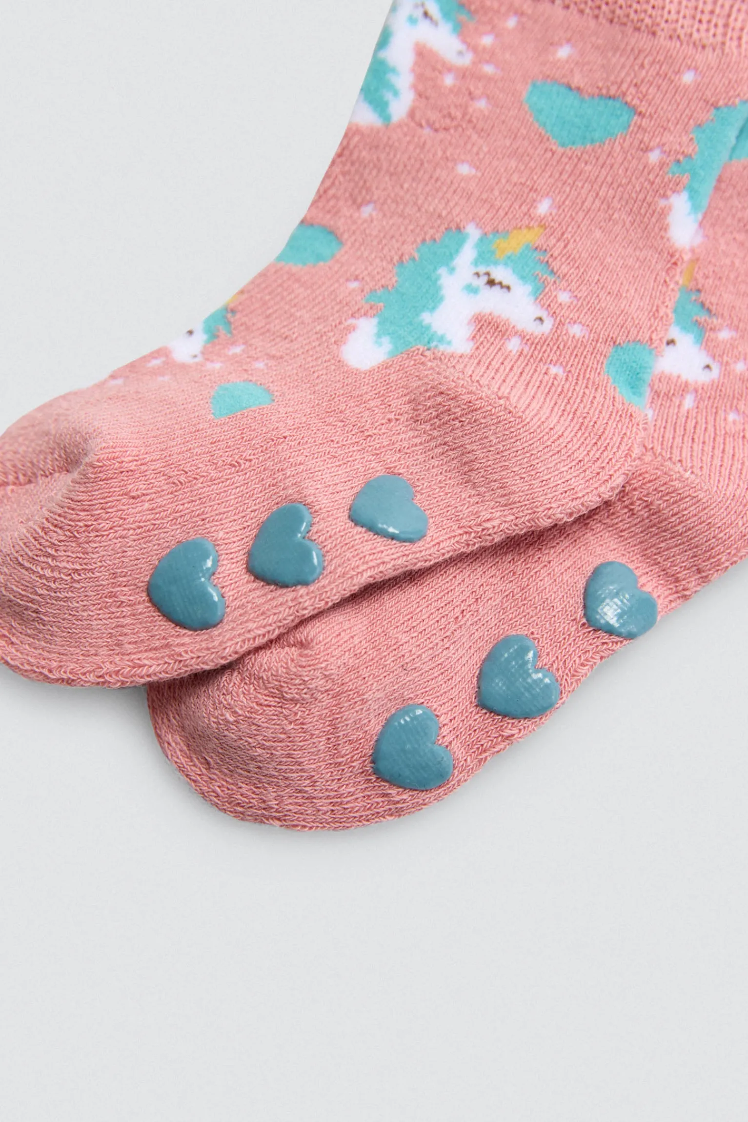 Pack de 4 pares de calcetines térmicos, antideslizantes y con estampados rosas para bebé niña. Puño antipresión.