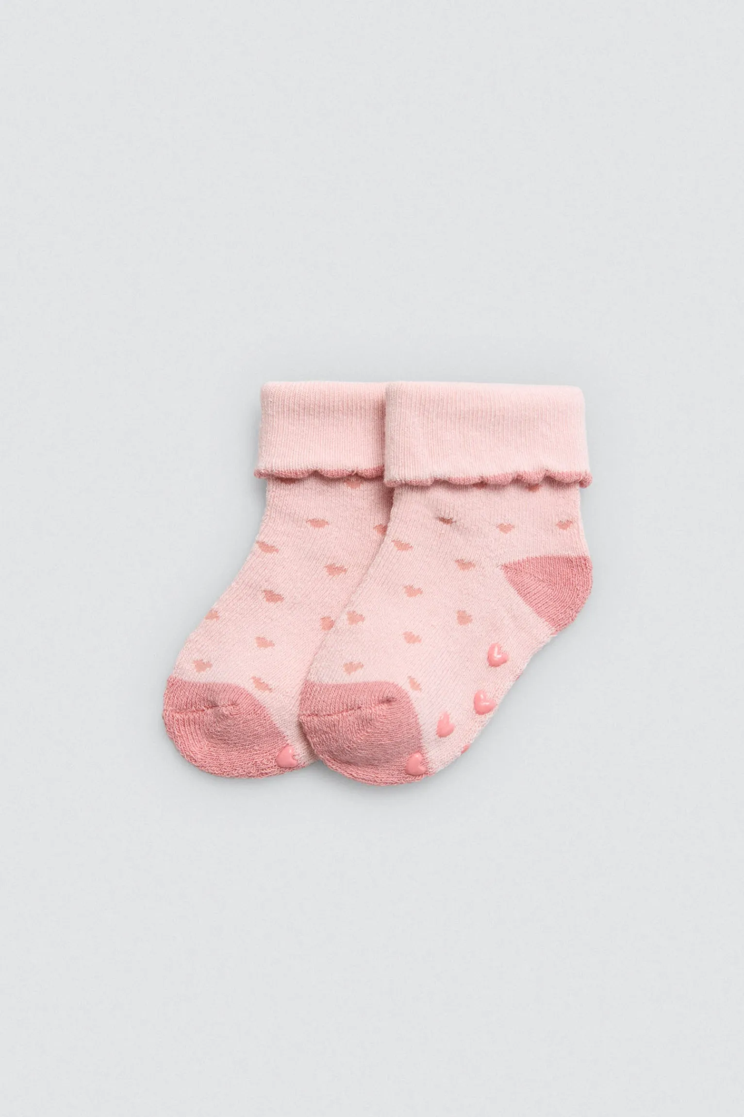 Pack de 4 pares de calcetines térmicos y antideslizantes para bebé. Puño antipresión.