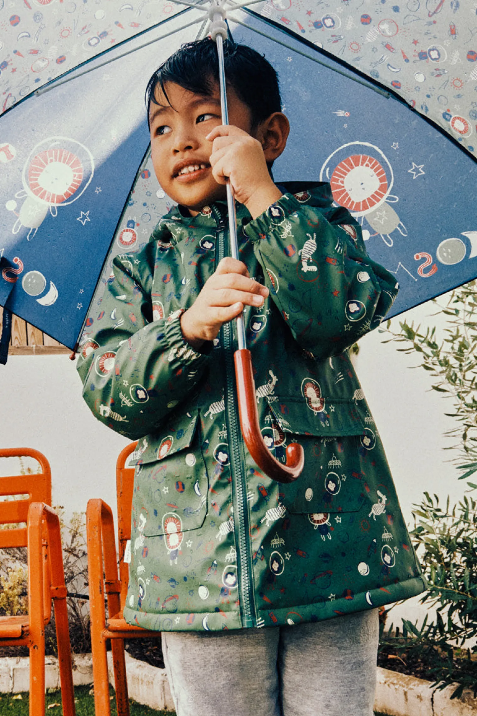 Paraguas infantil con estampado galáctico, hecho con fibra de vidrio.