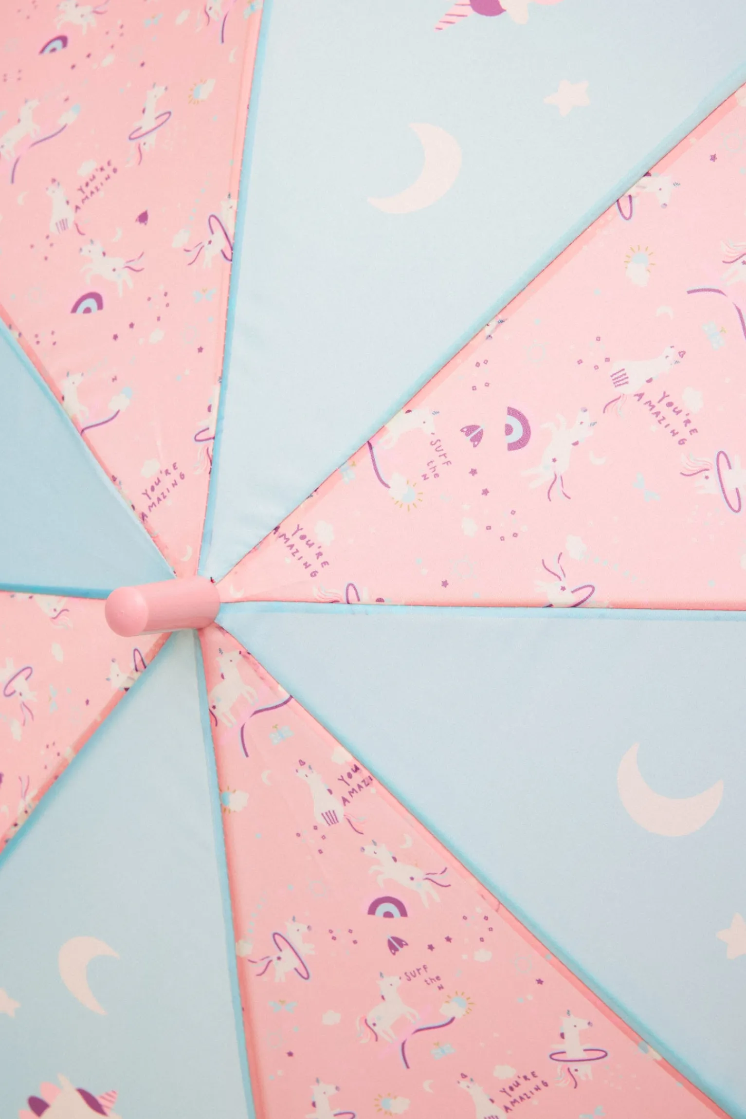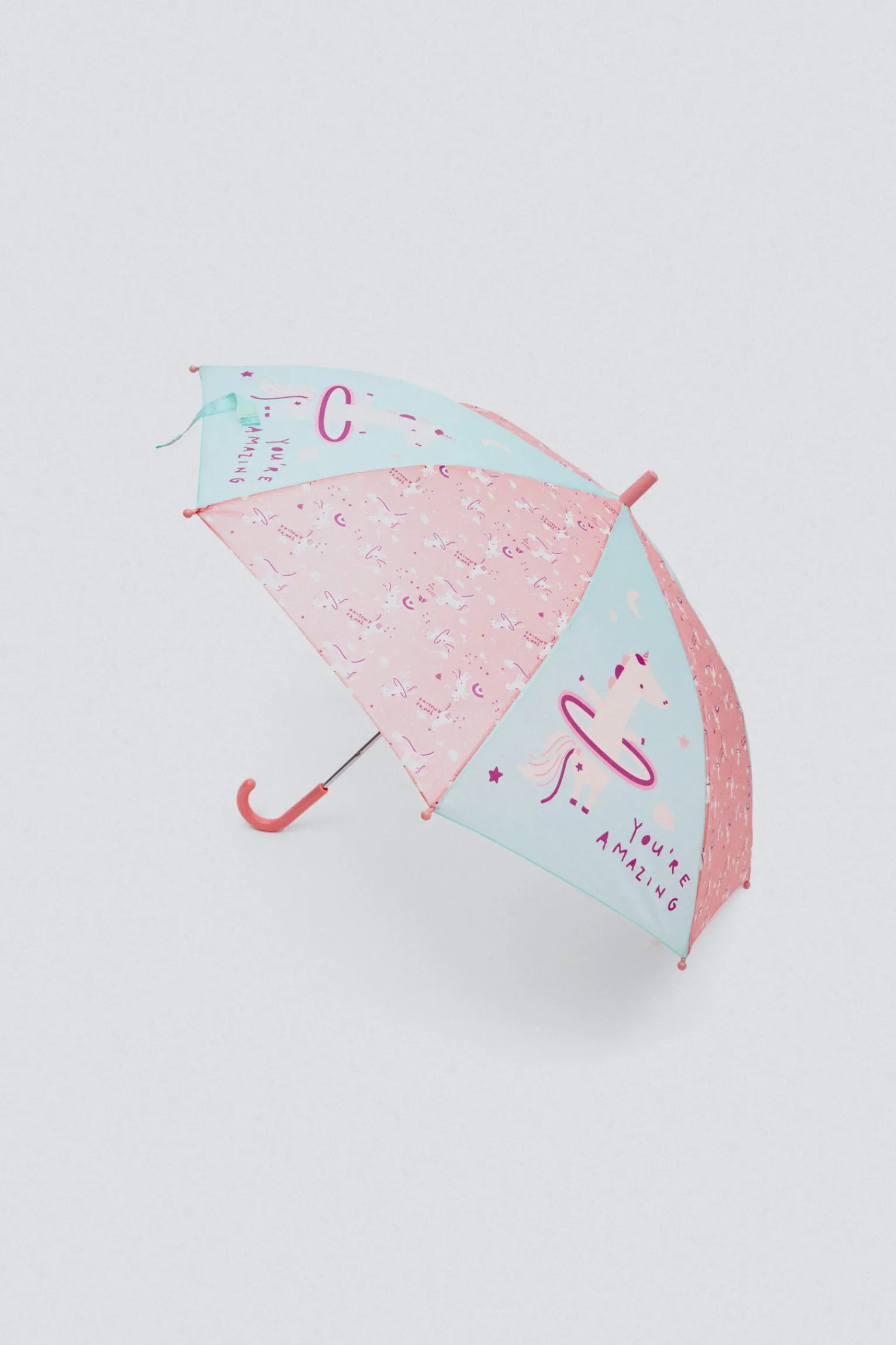 Paraguas infantil con estampado de unicornios, hecho con fibra de vidrio.