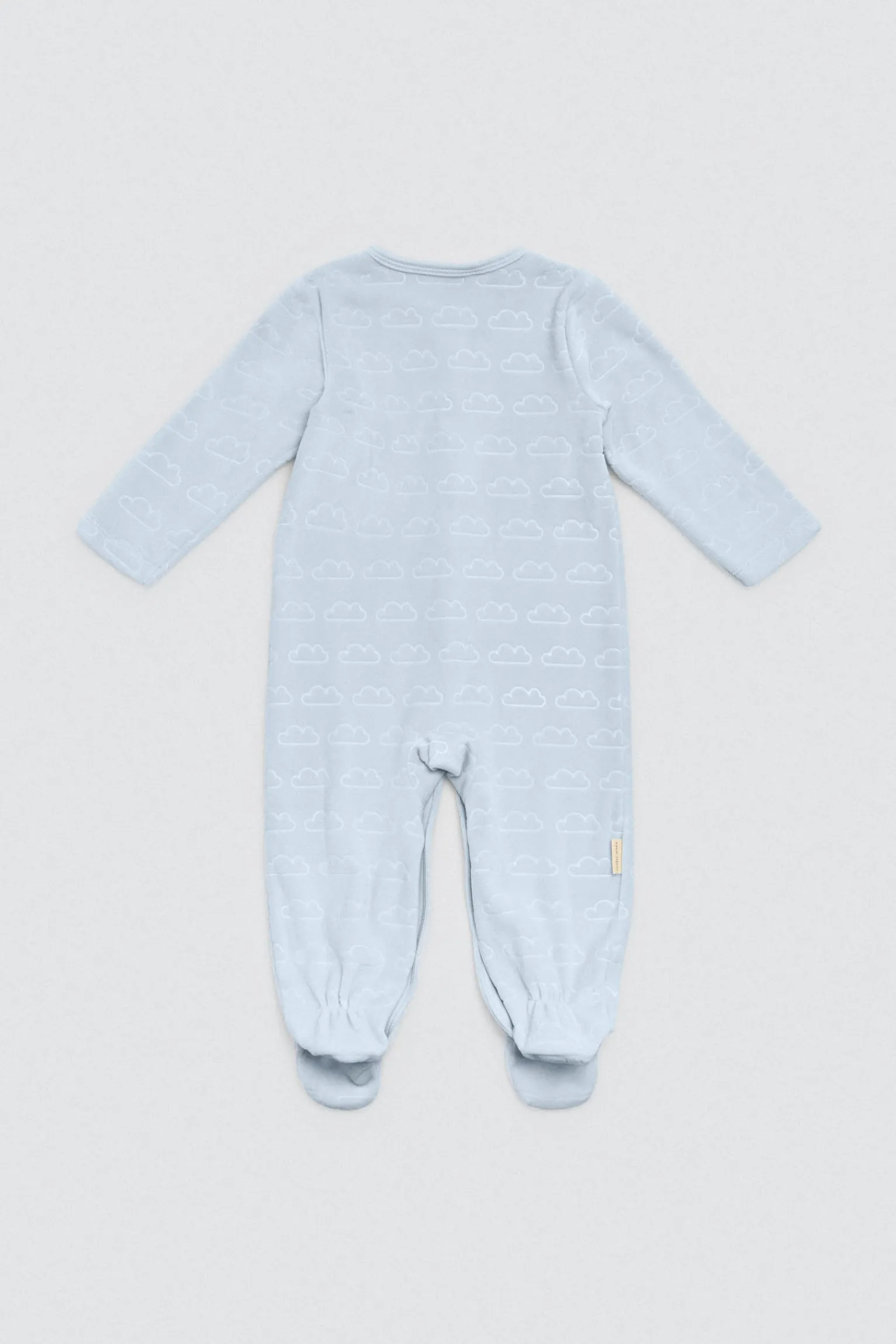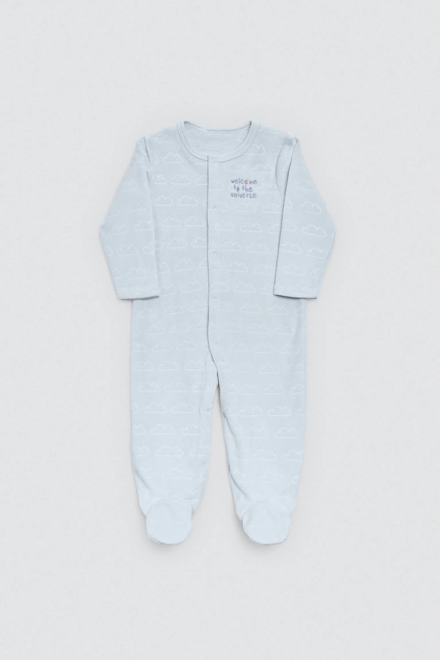 Pelele de manga larga para bebé con interior afelpado y pies cerrados. Diseño con cierre de cremallera para facilitar el cambio. Estampado de planetas y estrellas.