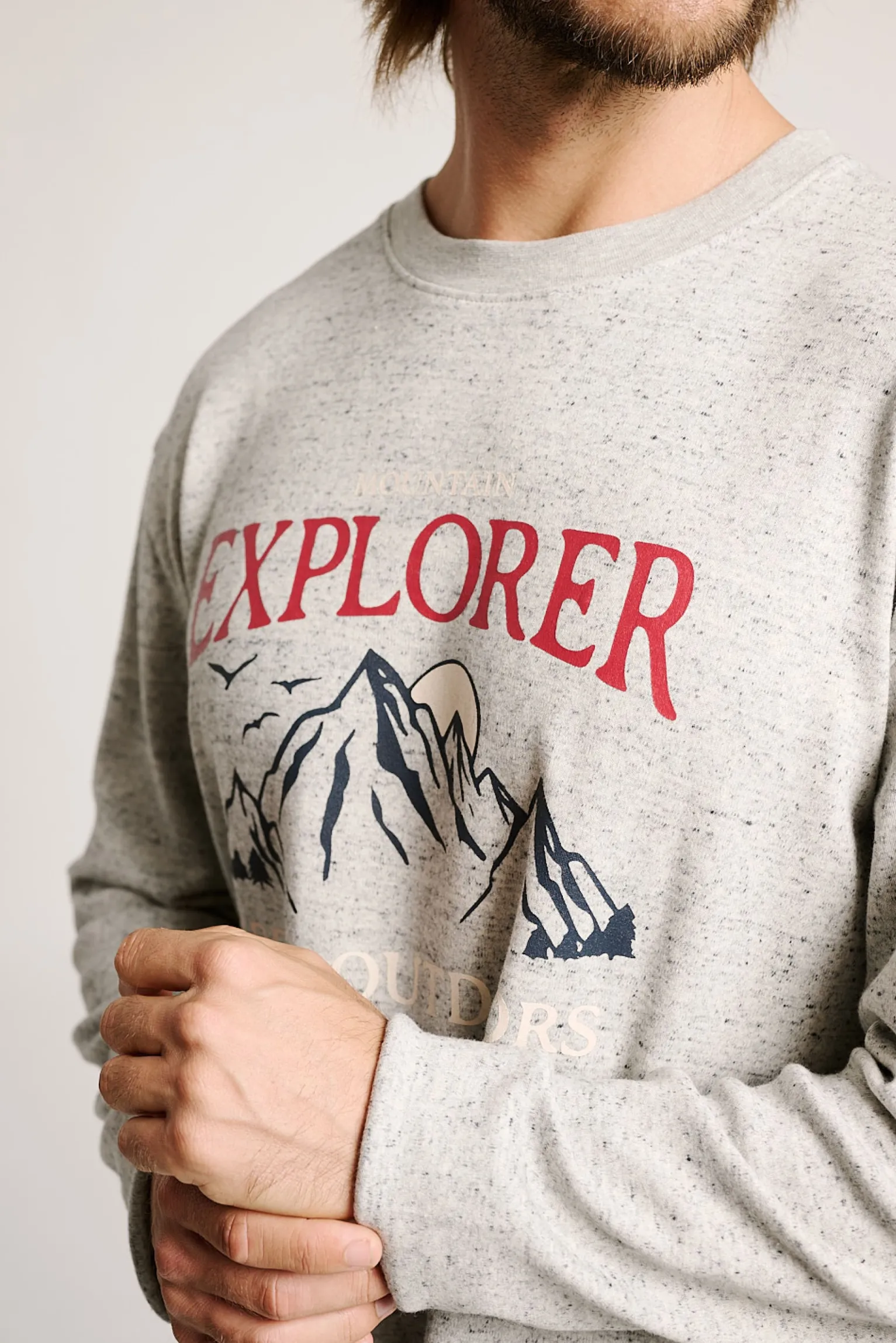 Pijama largo de hombre ideal para los amantes de la aventura y el descanso. La camiseta en tono gris jaspeado luce un estampado frontal con montañas y el mensaje «EXPLORER», que transmite espíritu explorador incluso en casa. El pantalón de cuadros, en tonos azul marino, beige y rojo, añade un toque clásico y cálido al conjunto. Cuenta con cinturilla elástica y cordón ajustable para mayor confort, además de prácticos bolsillos laterales.