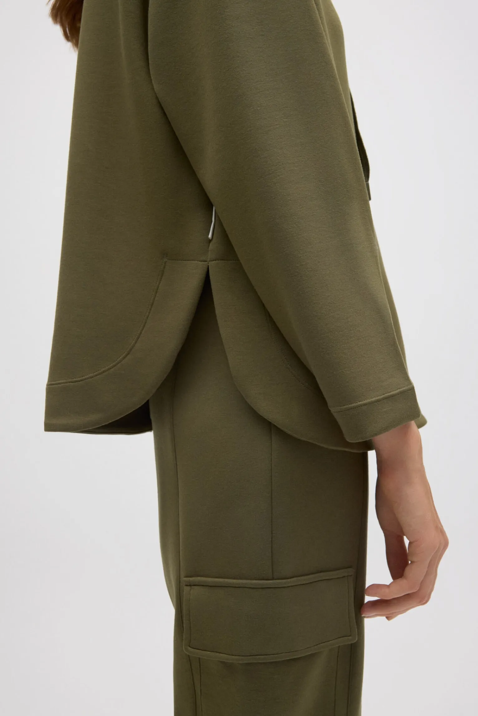 La suadera con cuello fluido es una prenda esencial para un estilo cómodo y sofisticado. El cuello fluido y el tejido ligero de esta sudadera la convierten en una opción perfecta para cualquier ocasión. Su diseño fluido la hace ideal para usar tanto en un look casual como elegante.