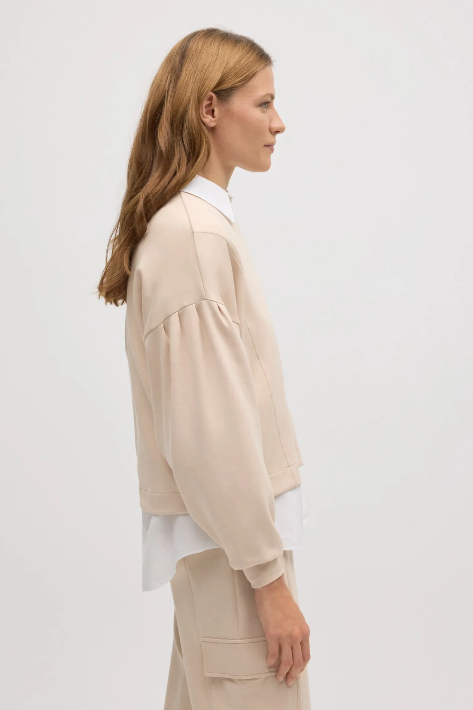 Esta suadera fluida de mangas abullonadas es una mezcla perfecta de comodidad y estilo. El tejido ligero y suave se adapta a tu cuerpo sin ser ajustado, mientras que las mangas abullonadas le dan un toque único y moderno. Ideal para un día relajado en casa o para una salida de fin de semana, esta sudadera es perfecta como ropa cómoda para el día a día.