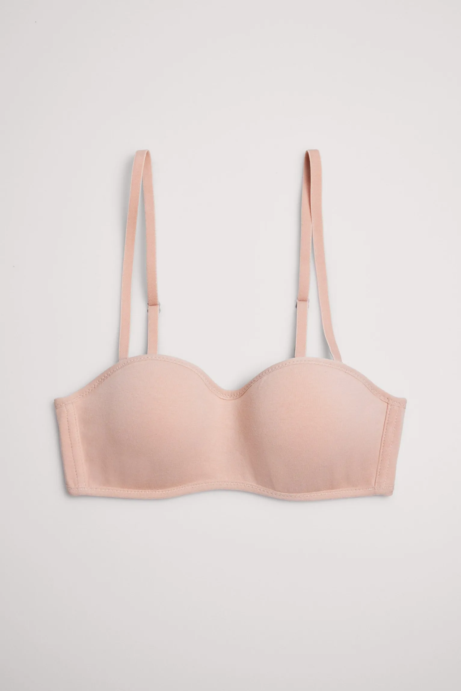 Sujetador bandeau para chica copa A. Es una prenda femenina diseñada para proporcionar una sensación de comodidad y libertad de movimiento. Este sujetador está confeccionado con algodón natural, lo que garantiza una sensación suave y agradable para la piel. El diseño del sujetador bandeau es perfecto para su uso bajo ropa ajustada y sin tirantes, lo que lo hace ideal para ocasiones especiales o para el uso diario. Además, los tirantes extraíbles permiten que se pueda usar como una prenda versátil que se adapta a cualquier estilo de ropa y preferencia personal. Ideal para aquellas chicas que buscan comodidad y libertad de movimiento en su ropa interior.