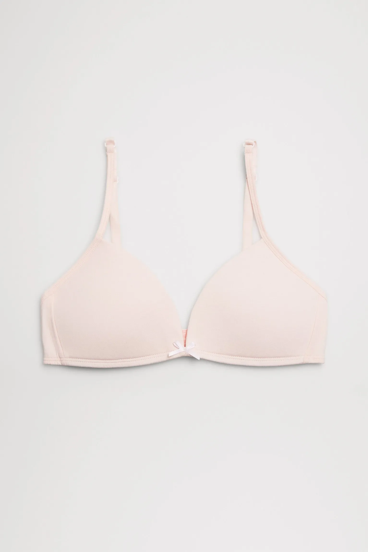 Confeccionado con un suave y transpirable algodón, este sujetador de copa pequeña en forma de triángulo te brinda una sensación de frescura y suavidad en tu piel durante todo el día. Su relleno ligero realza sutilmente tus formas naturales, proporcionándote un look natural y favorecedor.