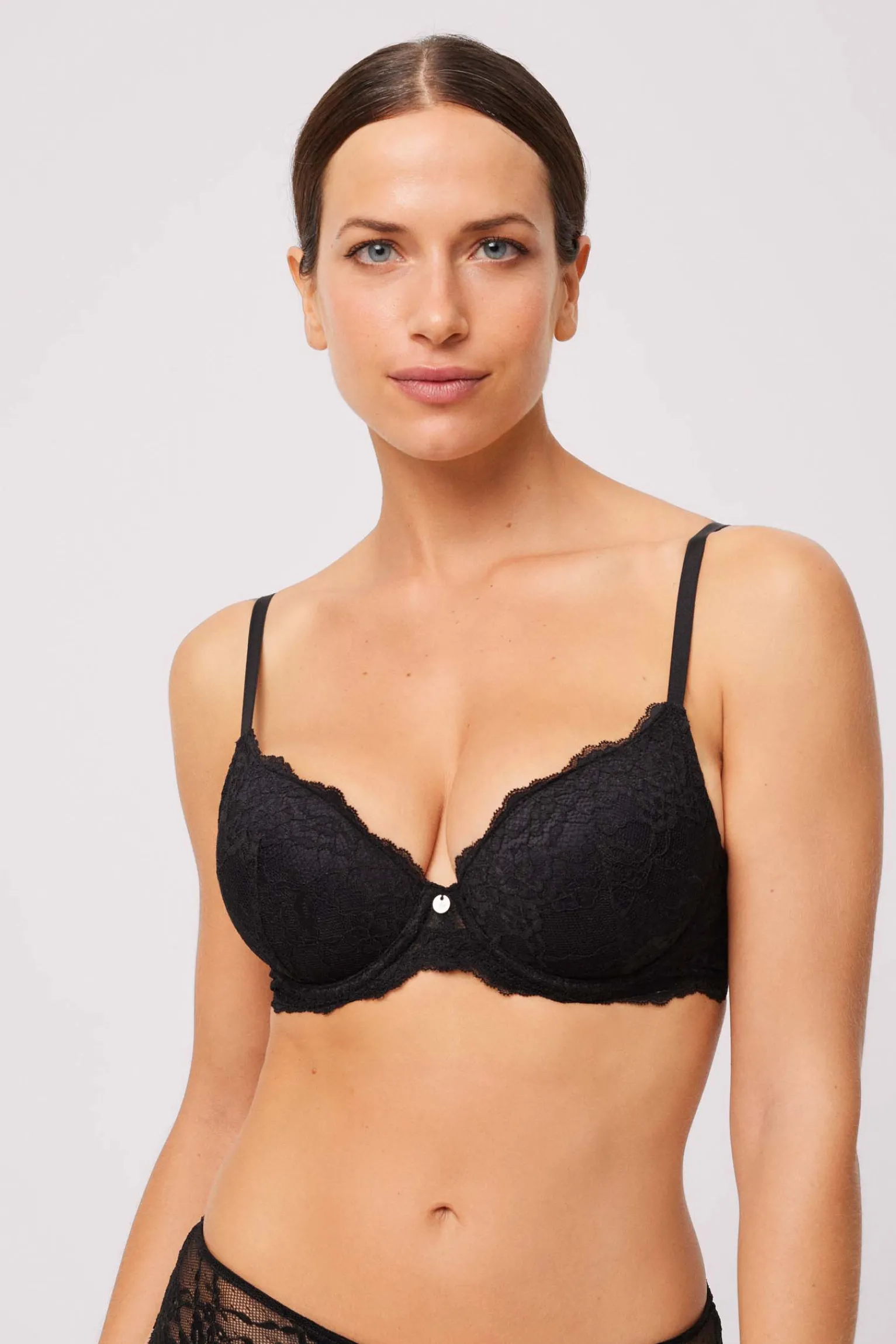 En nuestro afán por ofrecer lencería íntima que te haga sentir femenina y elegante diseñamos nuestro sujetador con aro y relleno de la colección Basic Lace. El toque de sencillez que buscamos se lo aporta su tejido de encaje. Este sujetador se adapta a tus necesidades, ofreciéndote la comodidad que mereces sin renunciar a la belleza. La delicadeza del encaje se combina con la practicidad de un diseño cuidadosamente elaborado para el uso diario.