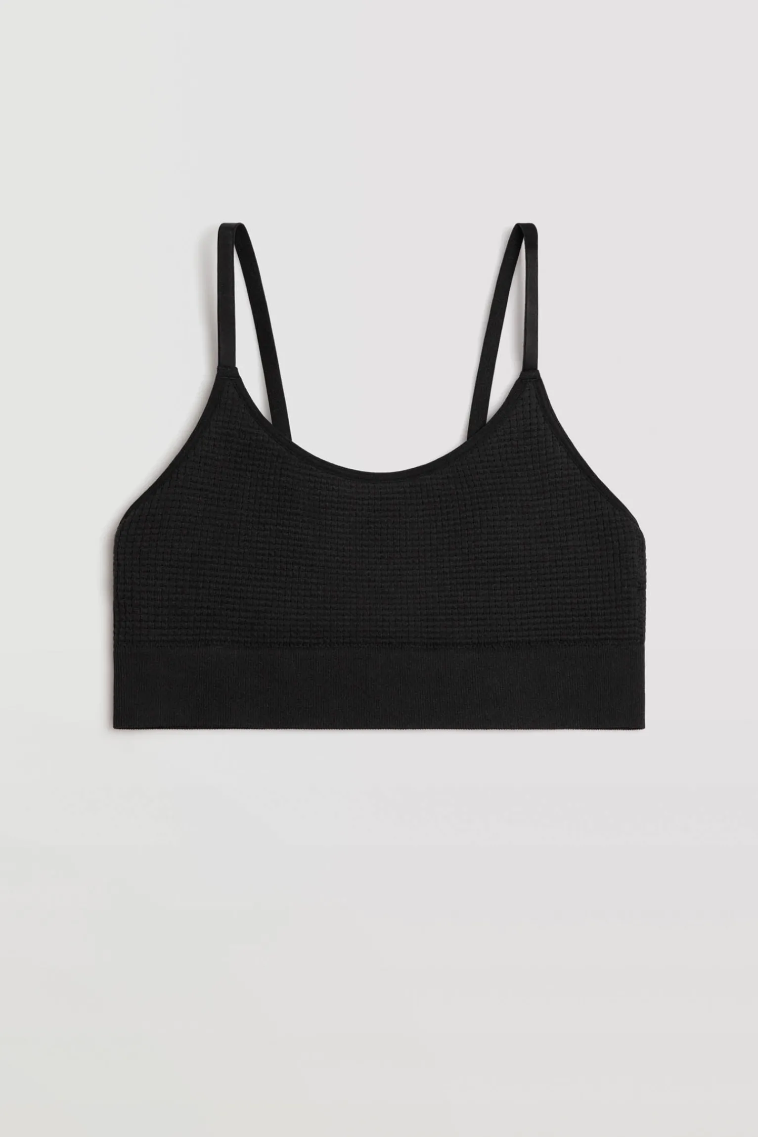 Nuestro sujetador tipo top sin aros ni costuras es la comodidad en su máximo esplendor. Olvídate de las rozaduras y las molestias, este modelo está diseñado para abrazar tu cuerpo sin costuras visibles. Y, ¿lo mejor de todo? No sacrificarás tu estilo por la comodidad. Su tejido y sus acabados invisibles hacen que sea una elección elegante para cualquier ocasión. Además, su diseño sin relleno realza tu figura de manera muy sutil.