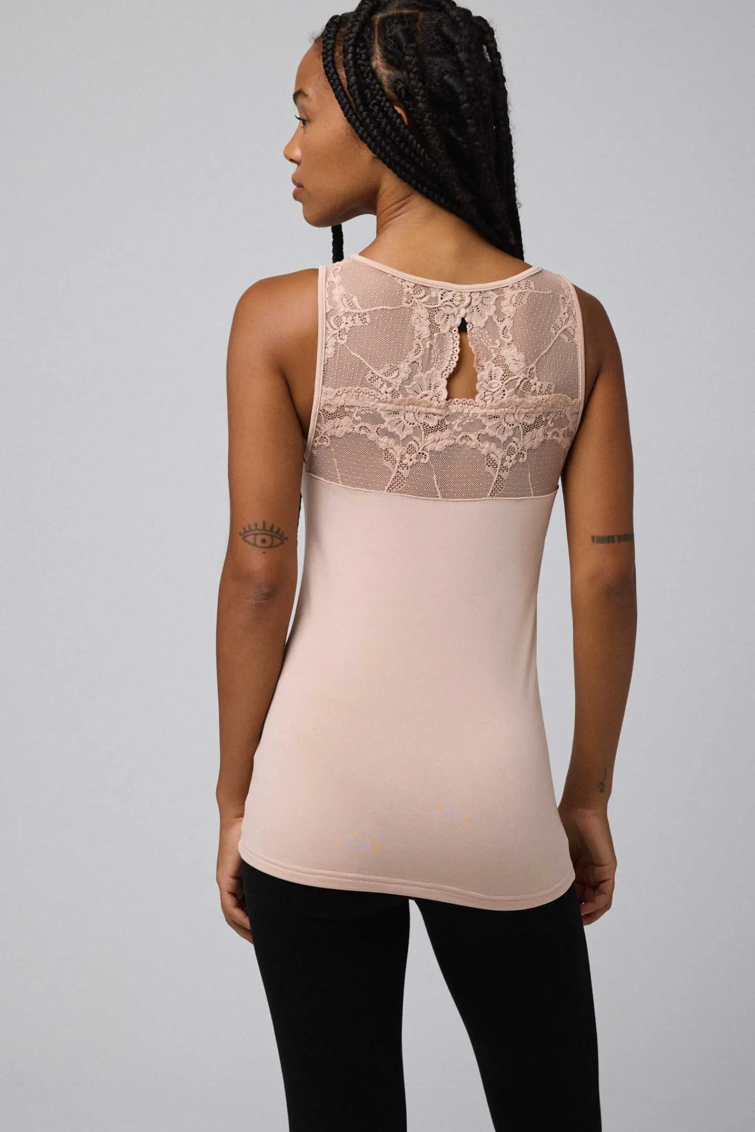 Camiseta térmica de tirantes para mujer con elegante detalle de encaje en el escote. Confeccionada en tejido térmico suave, ofreciendo calidez moderada y confort durante los días frescos. Su diseño liso y femenino, junto con el toque delicado del encaje, la convierte en una prenda versátil que puede lucirse como interior o combinada en estilismos casuales e invernales.