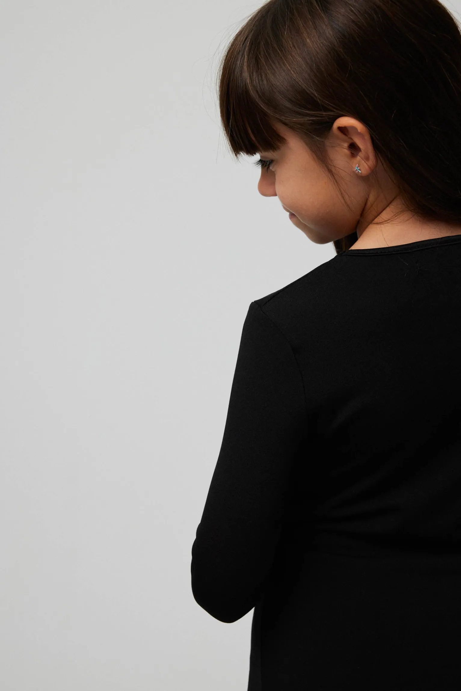 Camiseta térmica infantil de manga larga y cuello redondo en color negro.