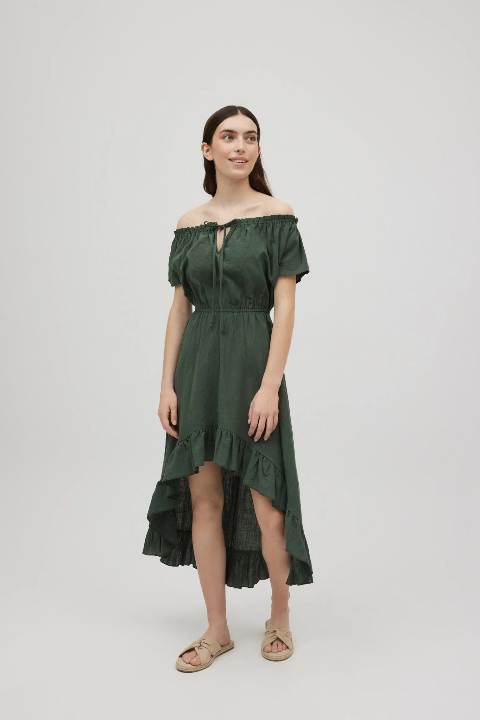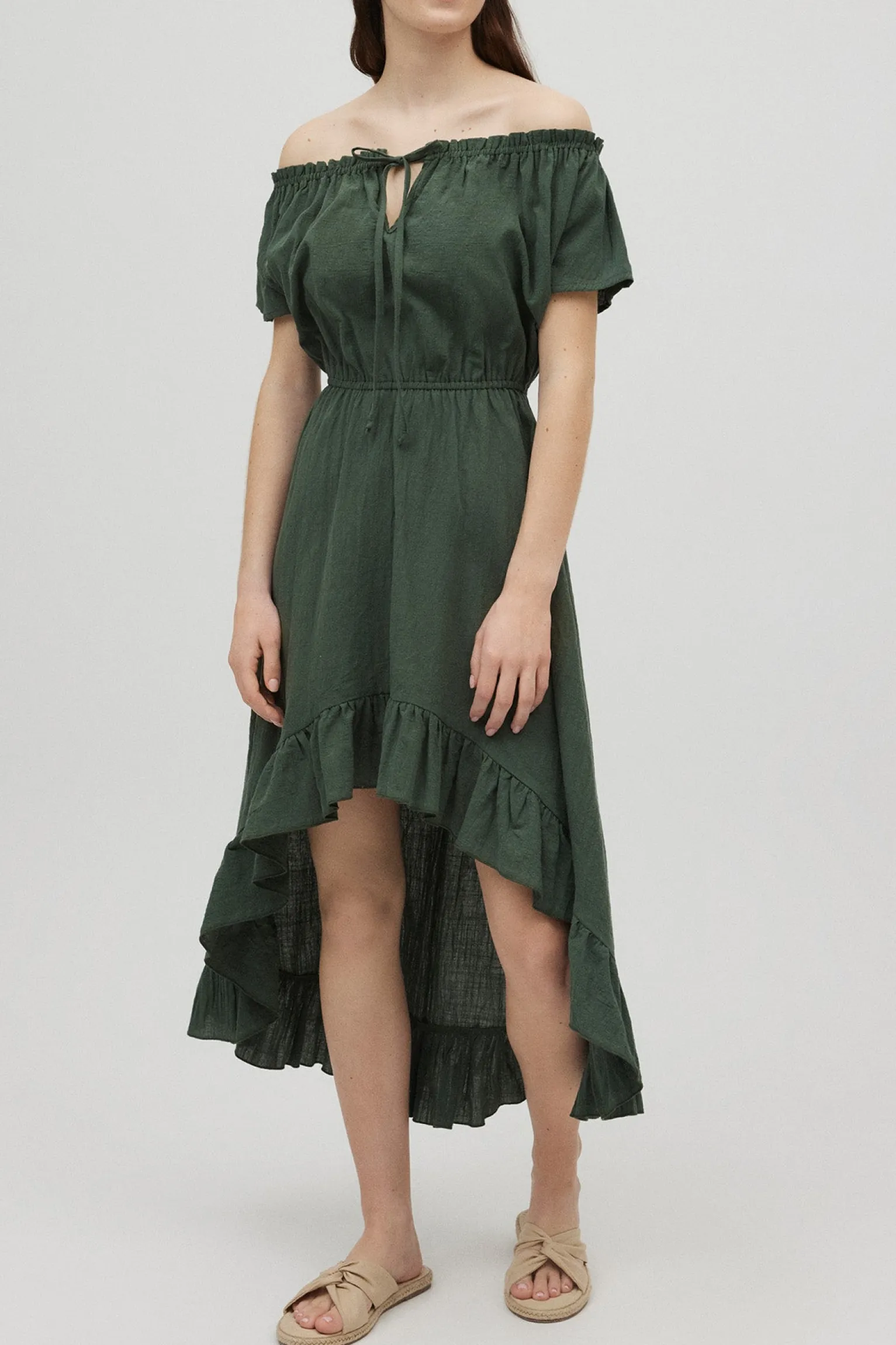 Vestido midi asimétrico en verde. Versatilidad y estilo en una sola prenda.