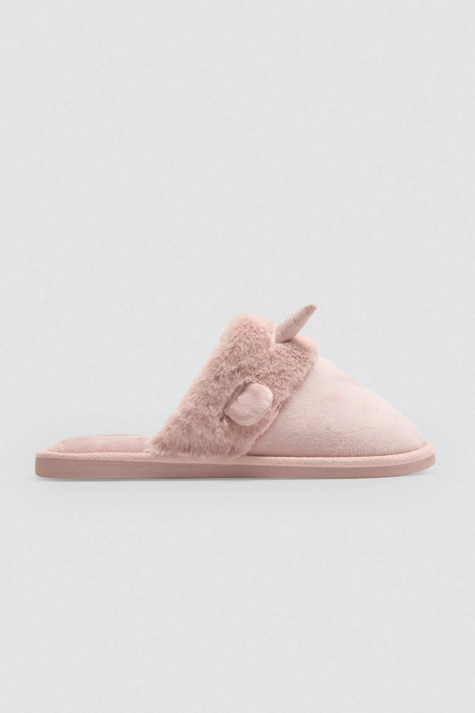Zapatillas de casa con detalles de orejas 3D y pelo