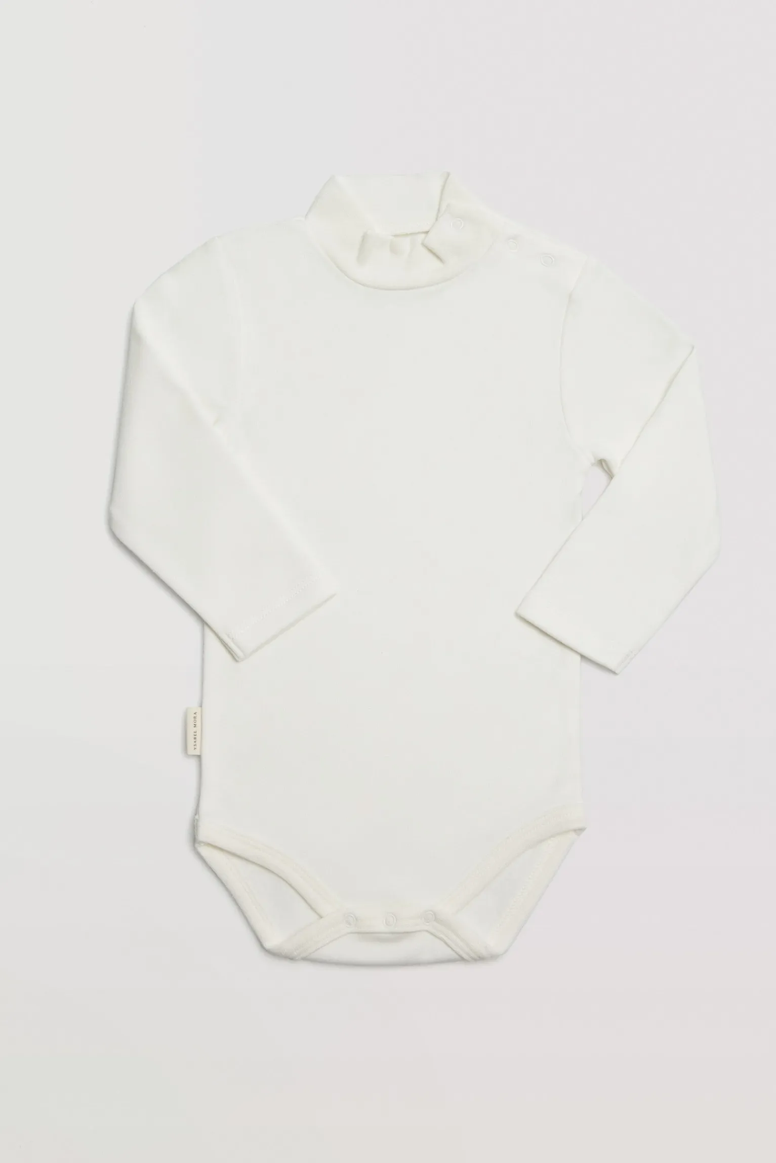Body de bebé de manga larga y cuello alto con algodón natural. Prenda confeccionada en un tejido suave y agradable gracias a su interior afelpado. Color blanco.