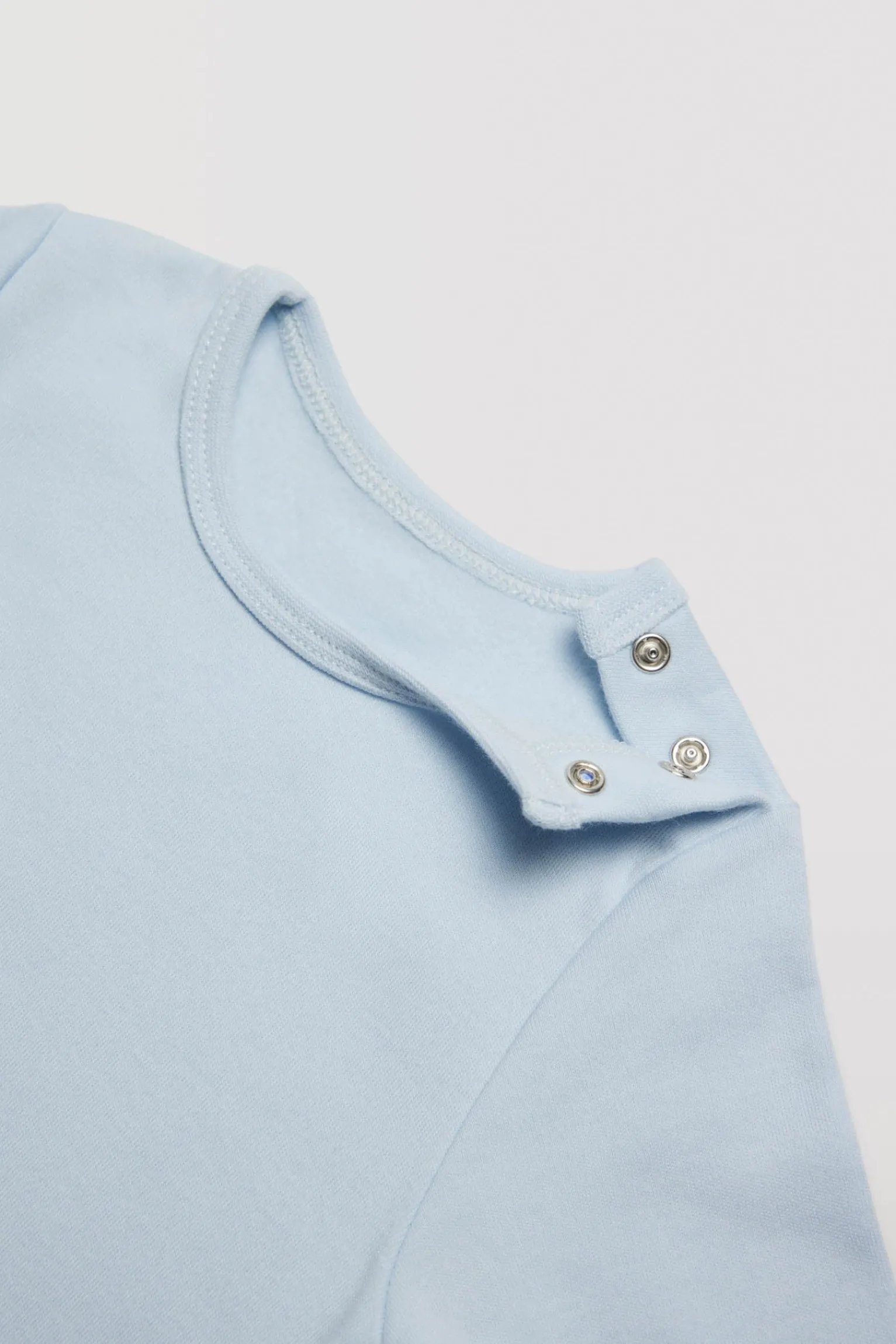 Body de bebé de manga larga con algodón natural. Prenda confeccionada en un tejido suave y agradable gracias a su interior afelpado. Color azul celeste.