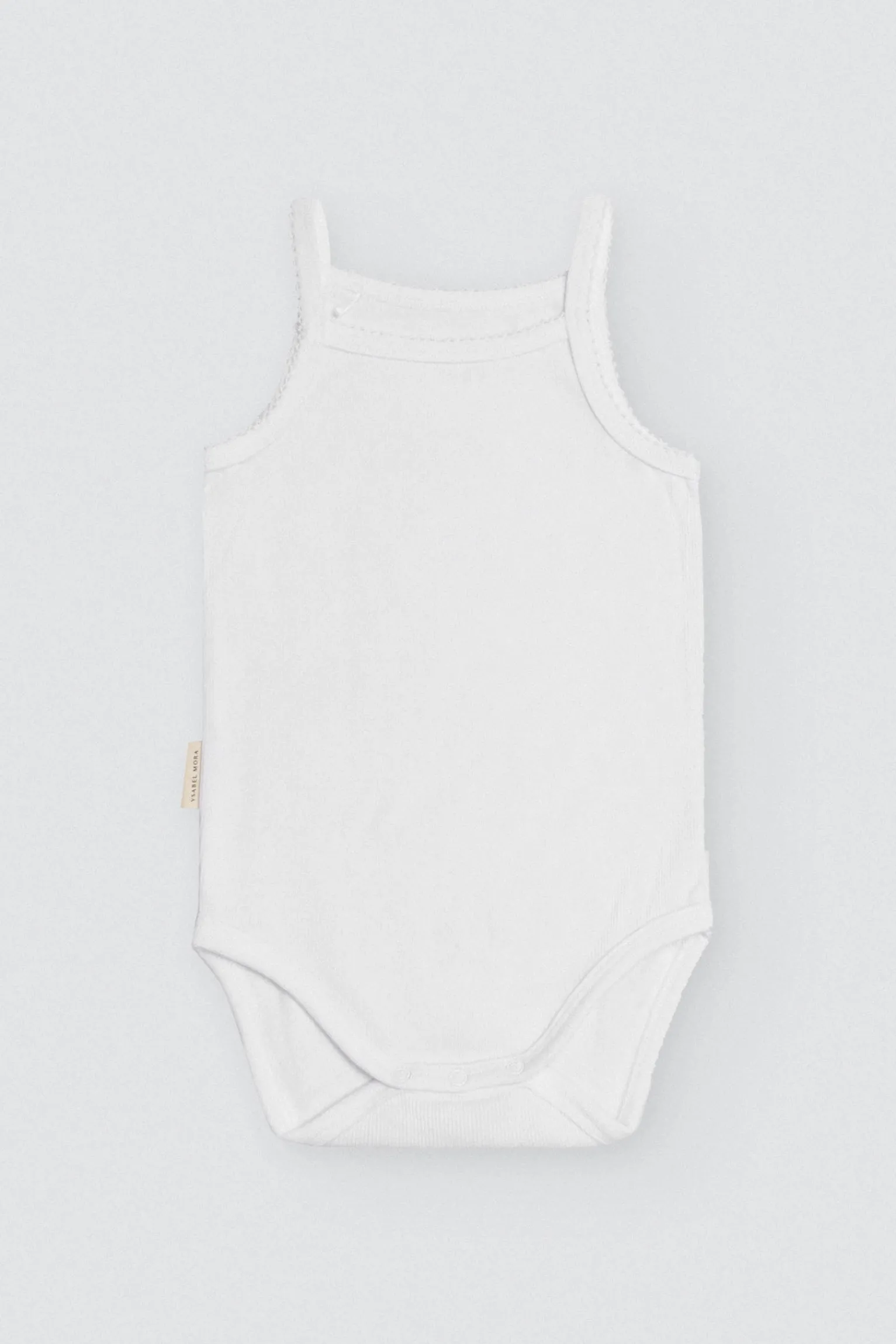 Body básico de tirantes para bebé. Diseño liso unisex con botones a presión en la entrepierna. Tirantes finos, perfectos para verano. Confeccionado con algodón 100% natural, material que es suave y transpirable. Color blanco. ¡Esta prenda no puede faltar en el armario de tu bebé!