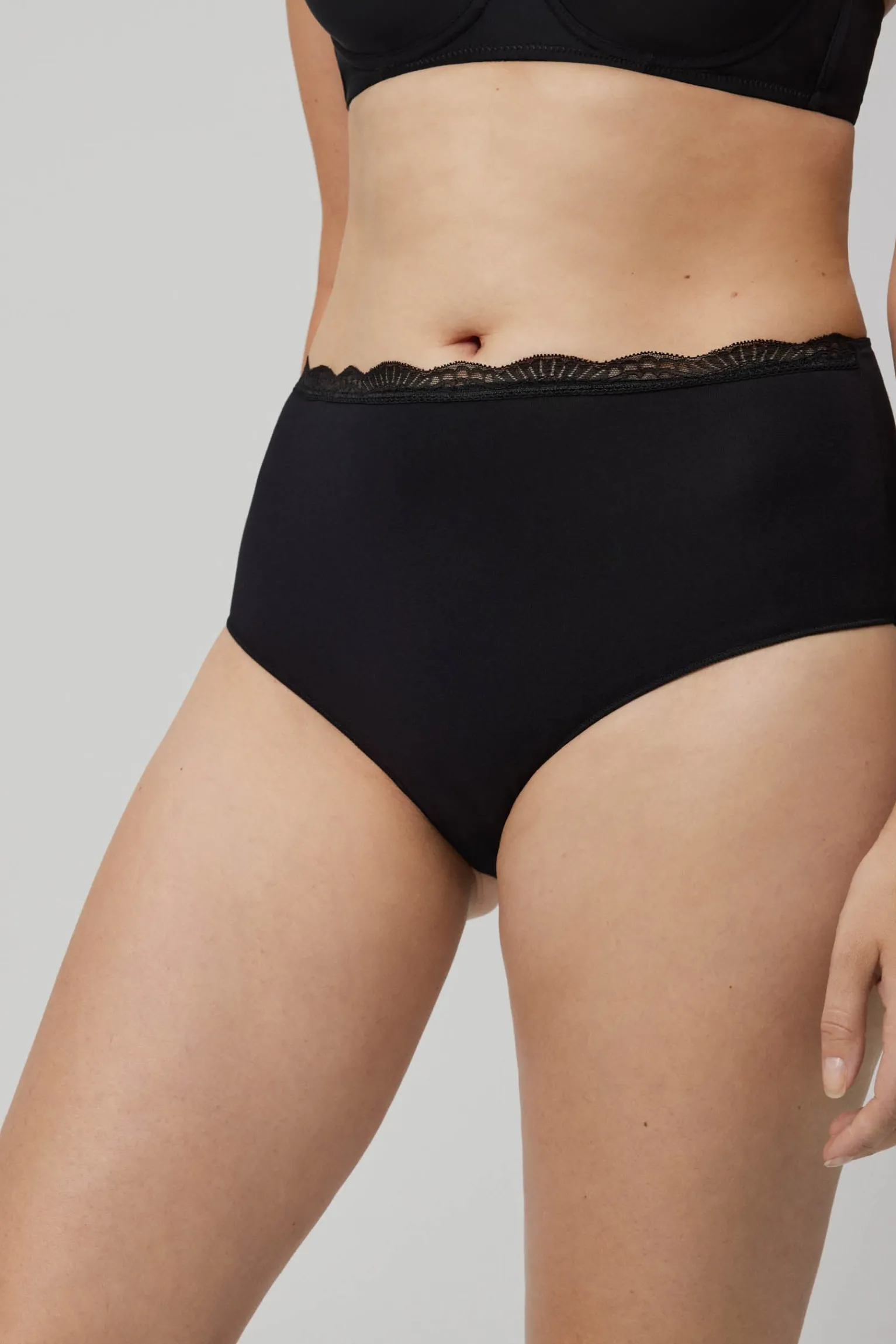 Braga maxi en tejido Cotton Nature. Las fibras naturales de este material aportan un extra de suavidad a la prenda. Sus acabados con costuras planas invisibles evitan las marcas y favorecen una mayor adaptabilidad y un ajuste ergonómico perfecto. Modelo básico de gran confort pensado para el día a día. Decoradas con blonda. Confeccionadas con material antialergénico.