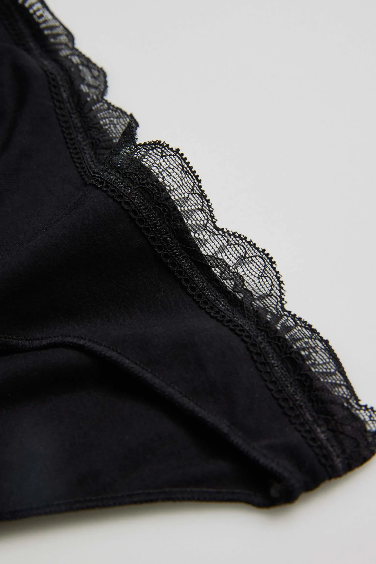 Braga mini en tejido Cotton Nature. Las fibras naturales de este material aportan un extra de suavidad a la prenda. Sus acabados con costuras planas invisibles evitan las marcas y favorecen una mayor adaptabilidad y un ajuste ergonómico perfecto. Modelo básico de gran confort pensado para el día a día. Decoradas con blonda. Confeccionadas con material antialergénico.