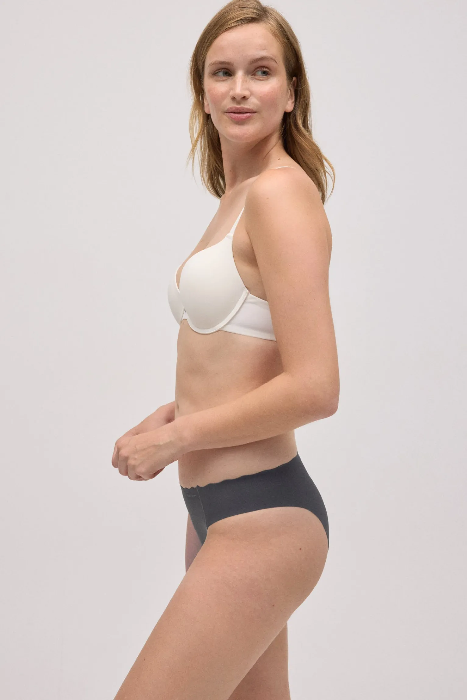 Braga mini láser de color gris marengo.
