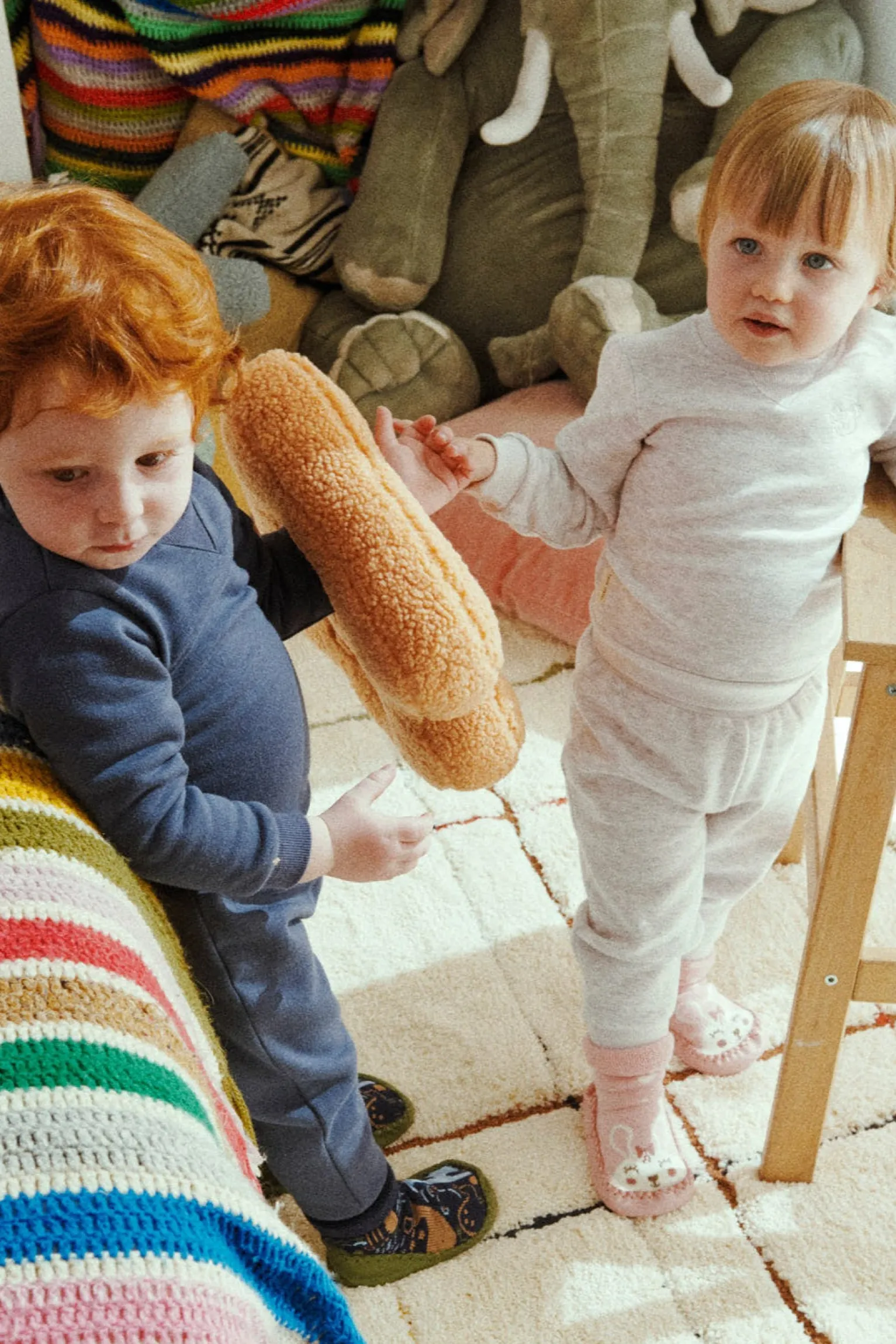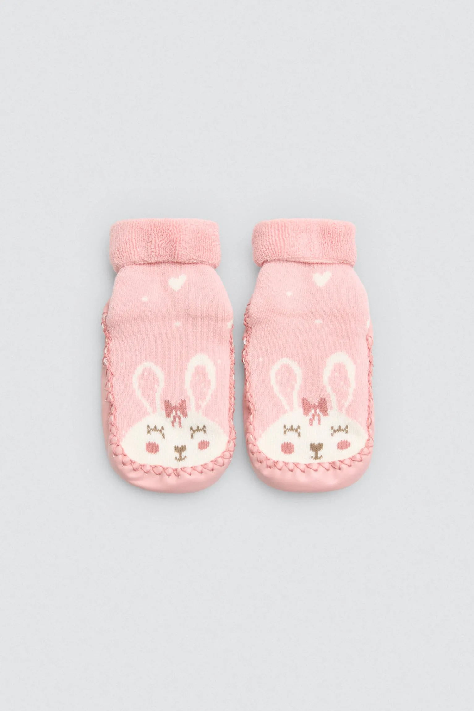 Calcetines zapatilla térmicos estampados para bebé con suela antideslizante. Dibujo de conejito. Puño antipresión.