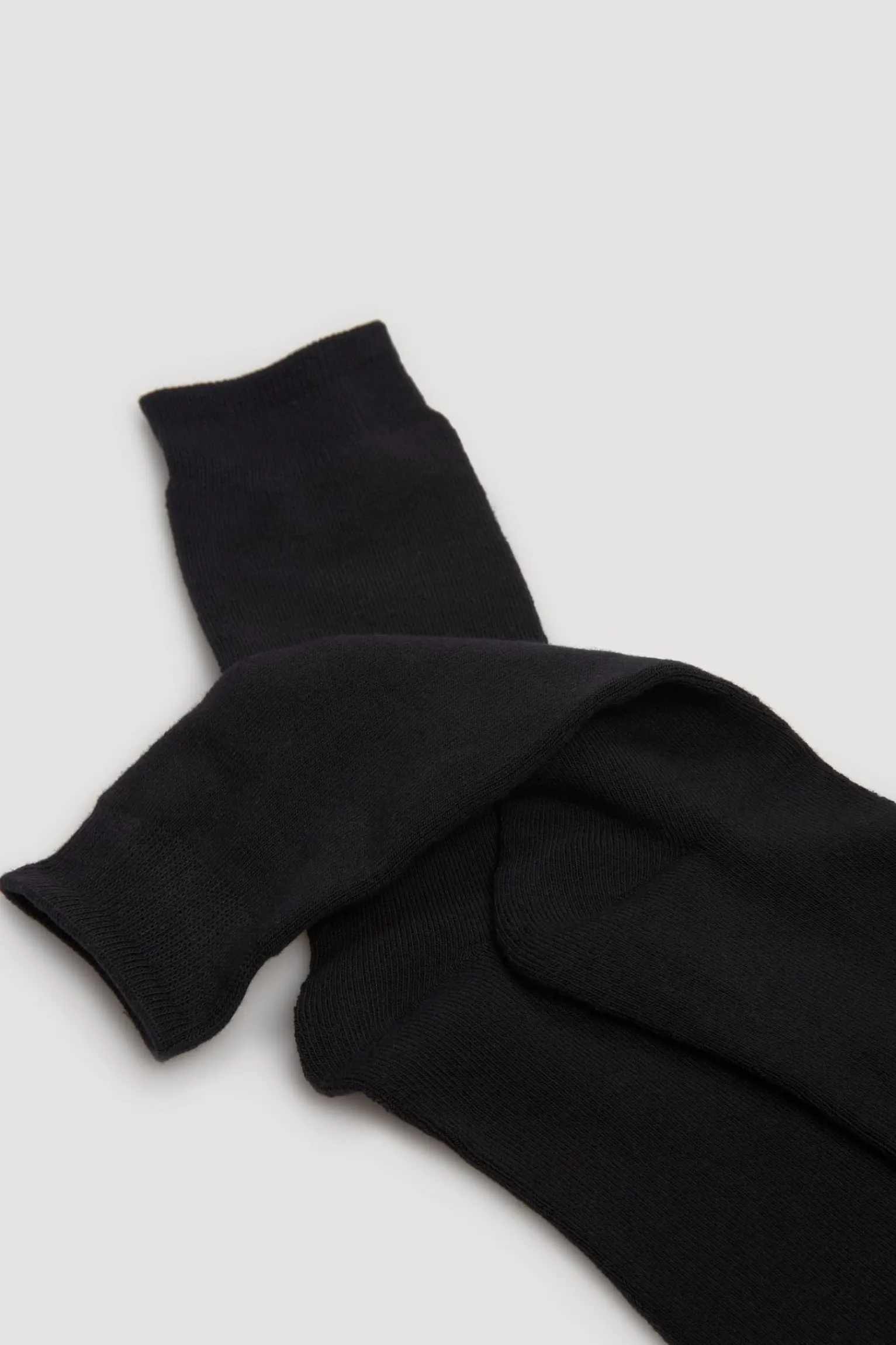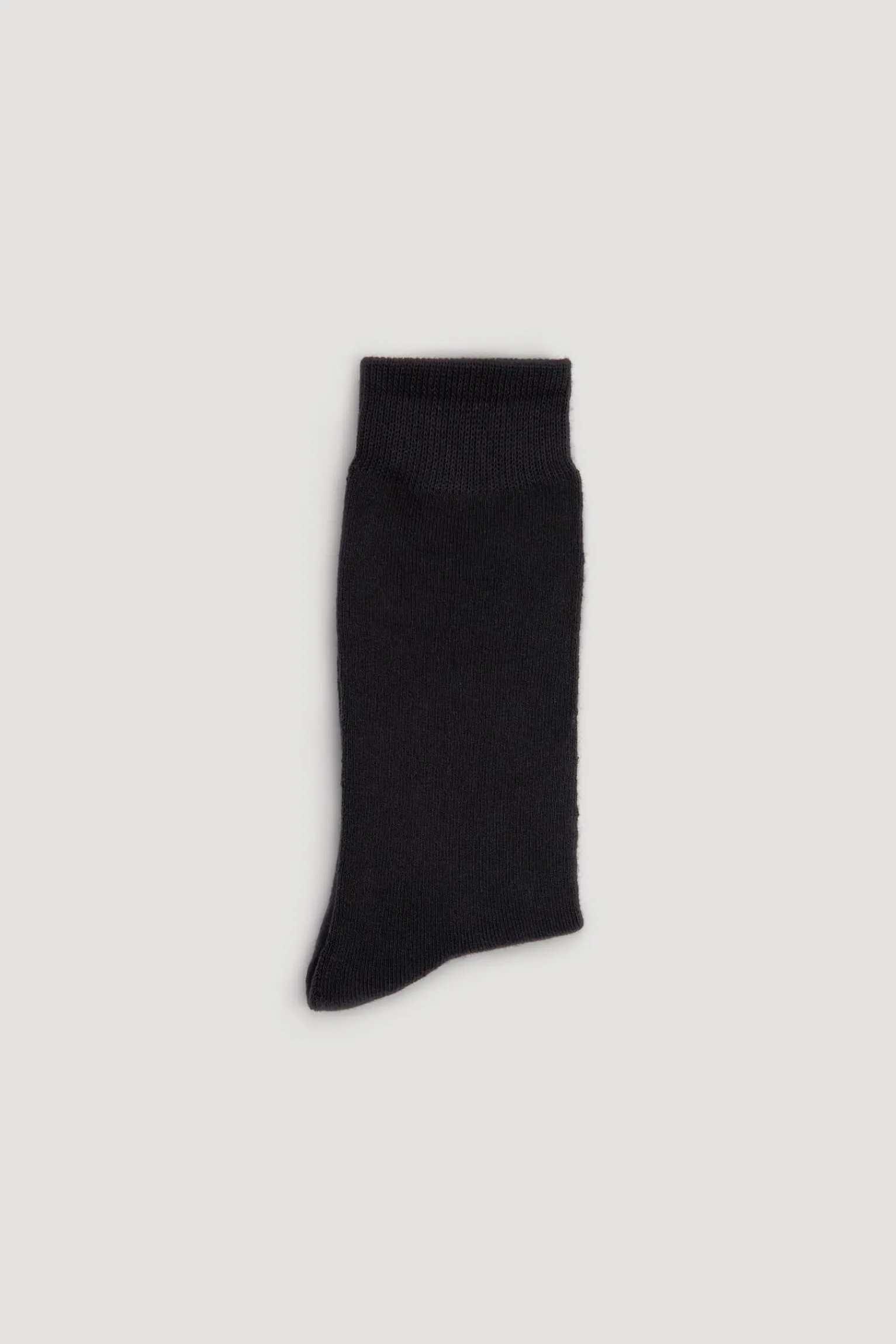 Calcetines térmicos con tejido de rizo en color negro. Modelo con puño antipresión.