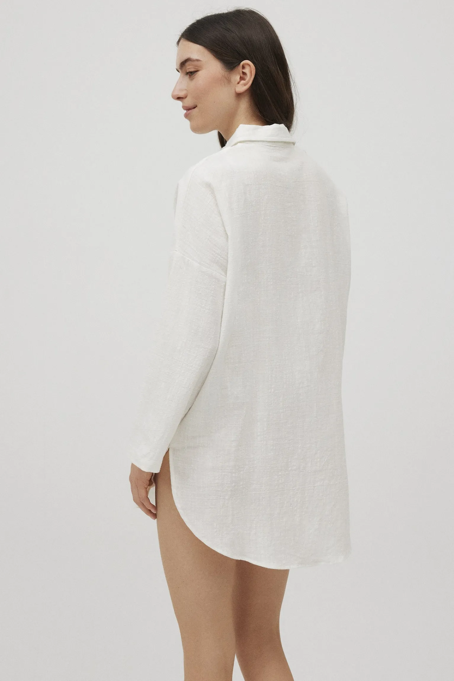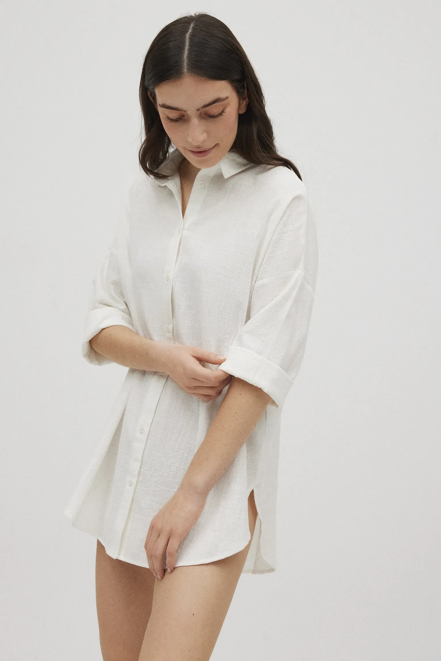 Camisa de manga larga, abotonada en la parte delantera. Prenda básica que no puede faltar en tu armario este verano. Confeccionada con 100% algodón.